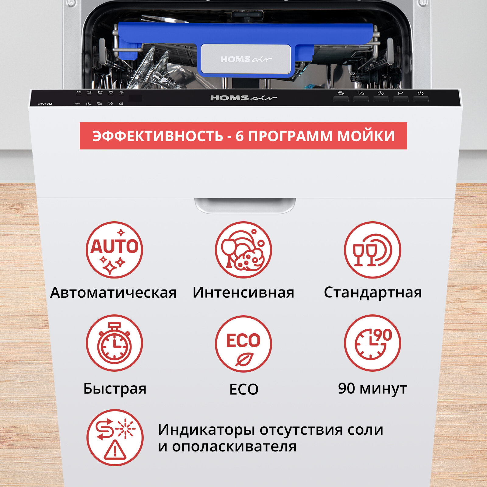СохранитьПосудомоечная машина HOMSair DW47M встраиваемая 45 см, 6 программ, 3 корзины, луч на полу, защита от протечек интересное: