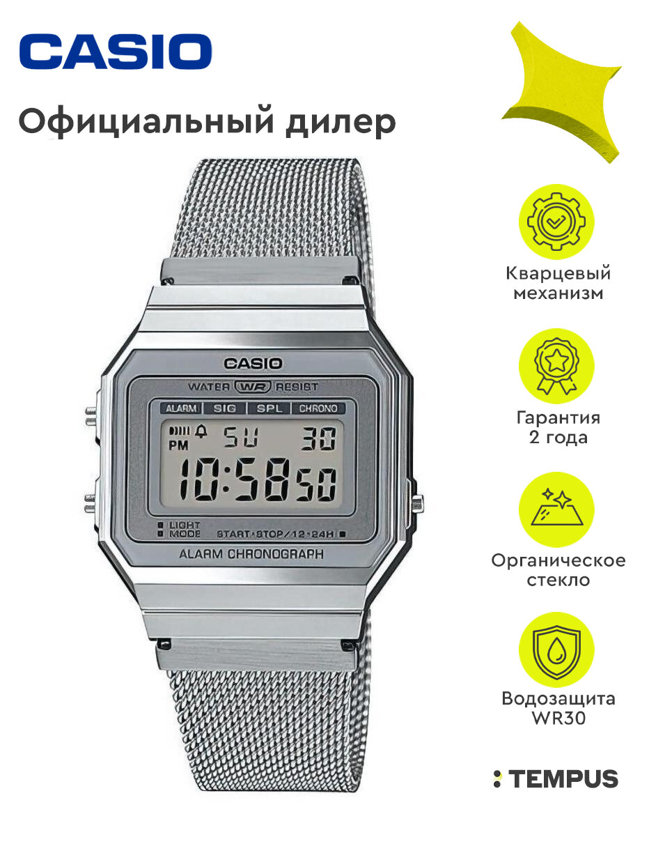 Наручные часы CASIO Vintage A700WEM-7AEF, серый, серебряный