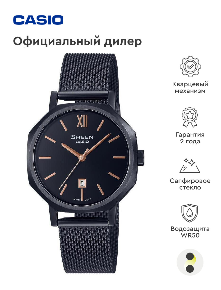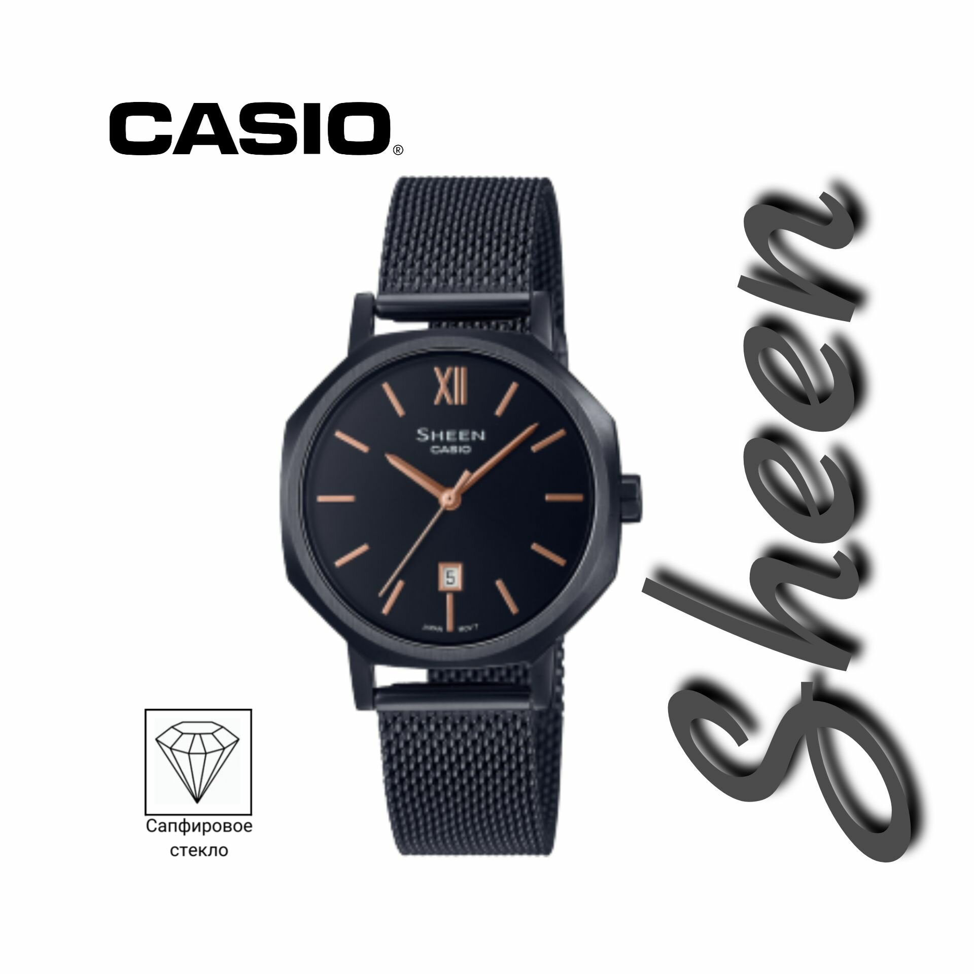 Купить Наручные часы Casio Sheen SHE-4554BM-1A черные с черным циферблатом