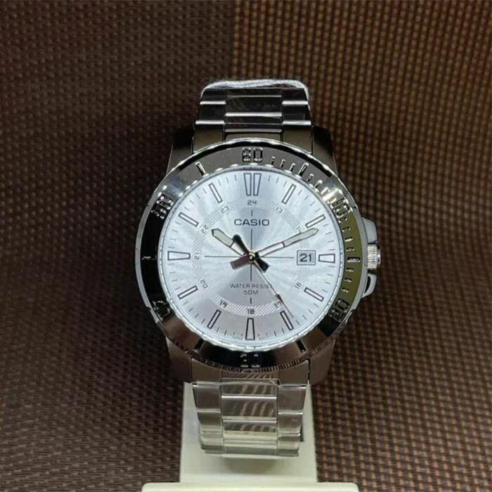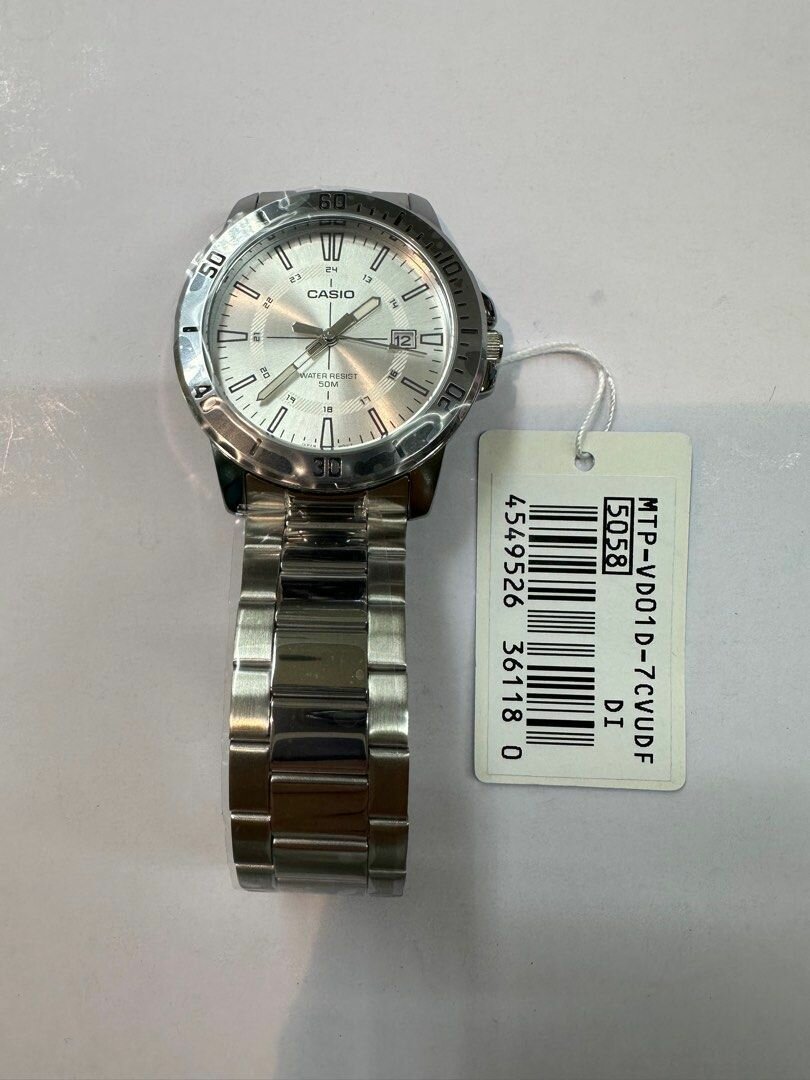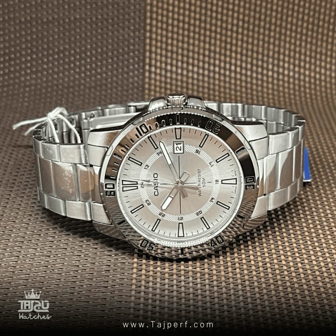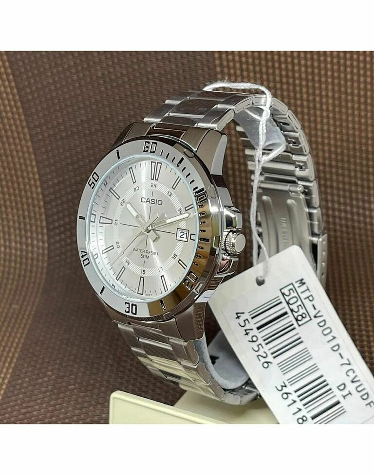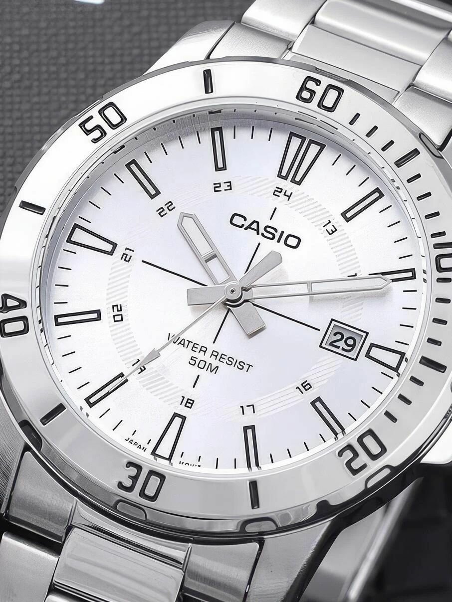 Купить MTP-VD01D-7C Casio наручные часы кварцевые WR50 (5 атм) мужские серебряный, серый отображение числа подсветка стрелок минеральное стекло
