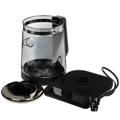 Начну с дизайна. Его корпус стеклянный, благодаря чему хорошо виден уровень воды. А тонированное стекло смотрится более стильно по сравнению с обычным. Ручка широкая, поэтому чайник удобно держать в руке, а так как она не нагревается, то еще и комфортно. Крышка открывается полностью. С одной стороны, неудобно, что ее нужно держать в руке во время налива, с другой - это дает полный доступ к емкости и исключает риск поломки механизма открывания. А уникальный носик позволяет наливать воду без брызг. Технической точки зрения это чайник имеет очень удобную сенсорную панель управления. С ее помощью можно не только вскипятить воду, но и нагреть ее до температуры с точностью до одного градуса. Кроме того, есть функция автоподогрева, которая сохраняет воду горячей до 2 часов. Дисплей большой, цифры крупные, поэтому выбранный режим хорошо виден. Дополнительно панель управления можно заблокировать от детей или выключить звук, если он раздражает. |