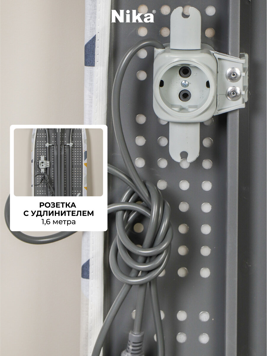 Доска гладильная 122х40 см, подст д/ут, рукав, розет, удл 2.2 м, Nika, Н10+, в асс