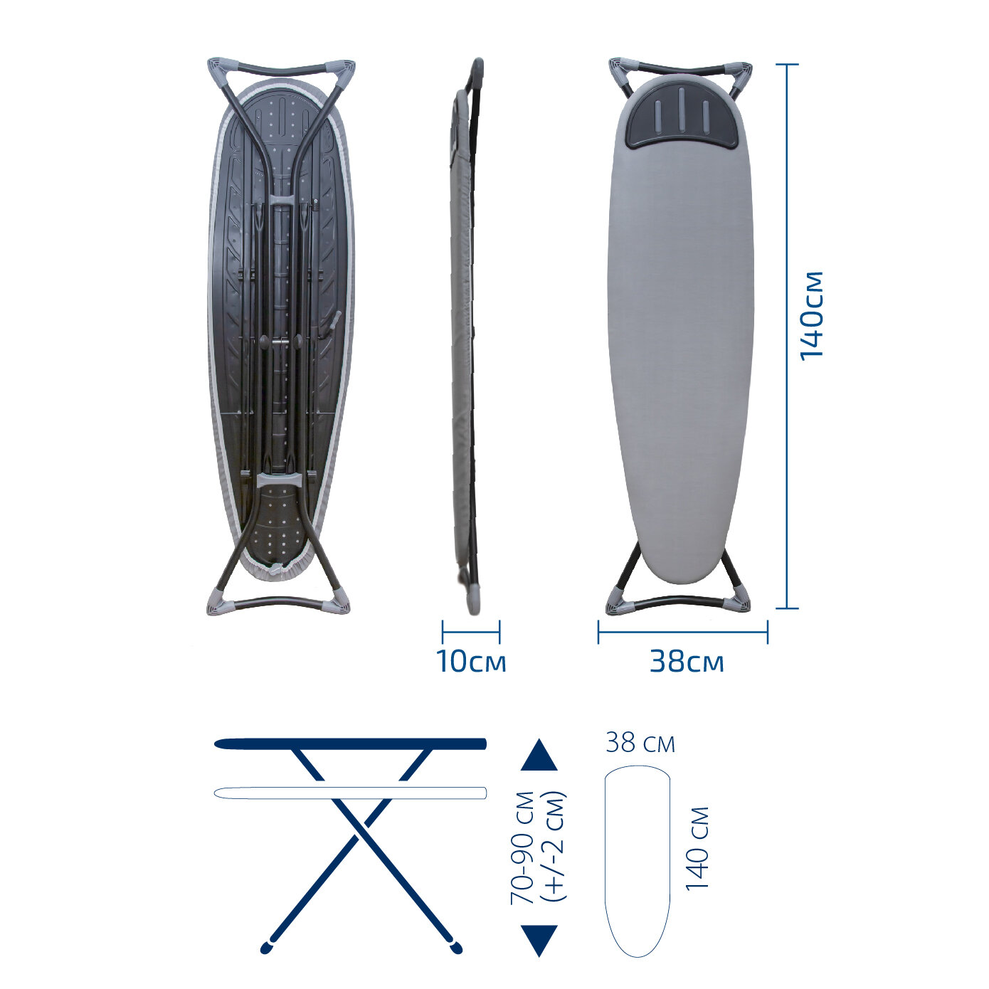 Хорошая высота. Отличная поверхность для глажки, ширина то что надо.