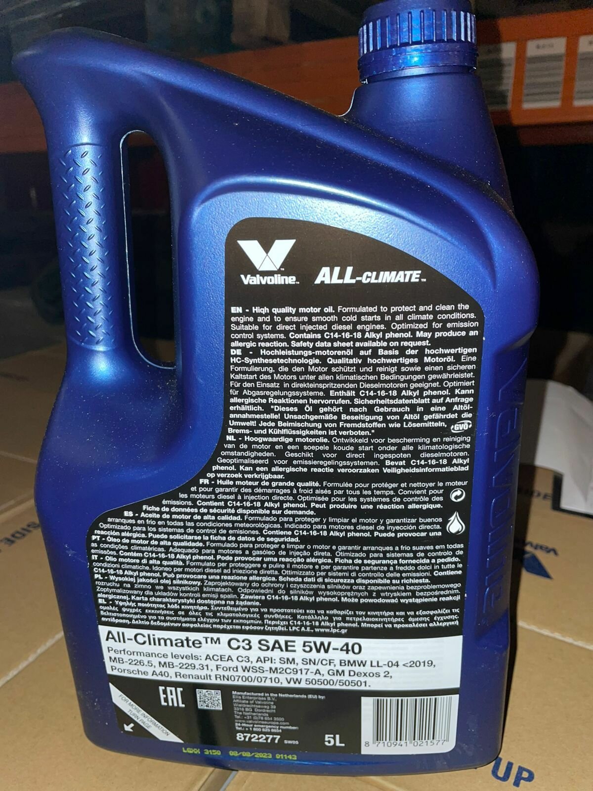 Синтетическое моторное масло VALVOLINE All-Climate Diesel C3 5W-40, 5 л, 4.5 кг, 1 шт