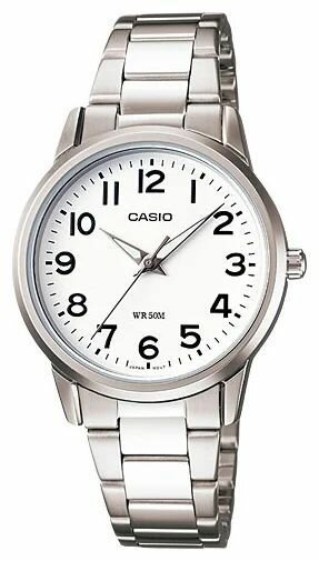 LTP-1303PD-7B Casio наручные часы кварцевые WR50 (5 атм) женские хром, белый подсветка стрелок минеральное стекло интересное: