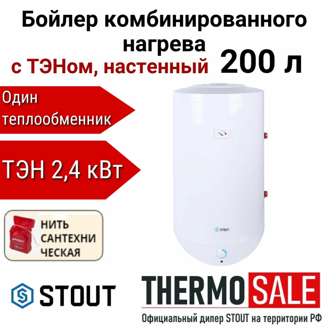 Водонагреватель комбинированного нагрева 200 л, ТЭН 2,4 кВт, настенный STOUT (SWH-1210-050200)