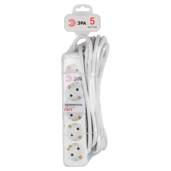 Купить Удлинитель электрический ЭРА U-5e-5m-3x1,5 с заземлением 5 розеток 16А 5м белый Б0044039