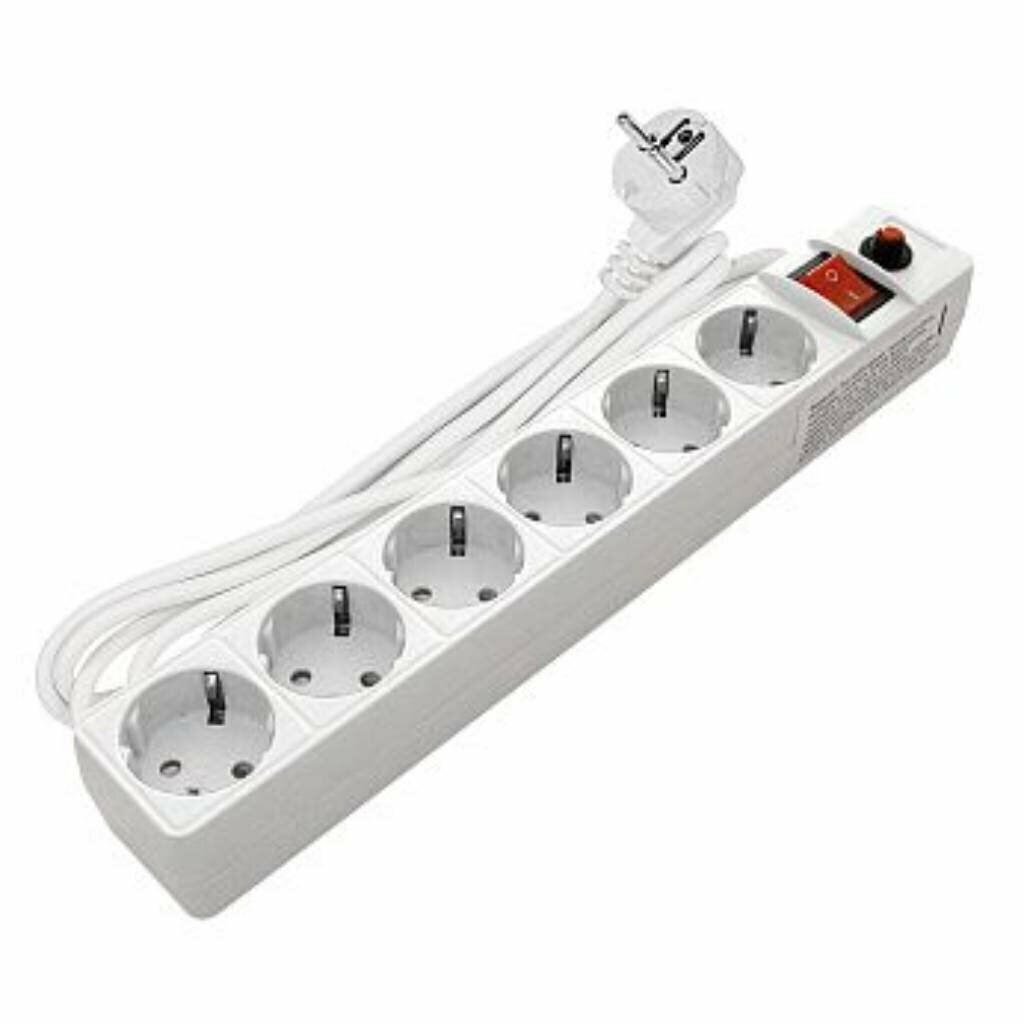 Удлинитель, сетевой фильтр (пилот) 6 мест, 1.8 м, UNIVersal, ПВС 3х0.75, белый, с предохранителем