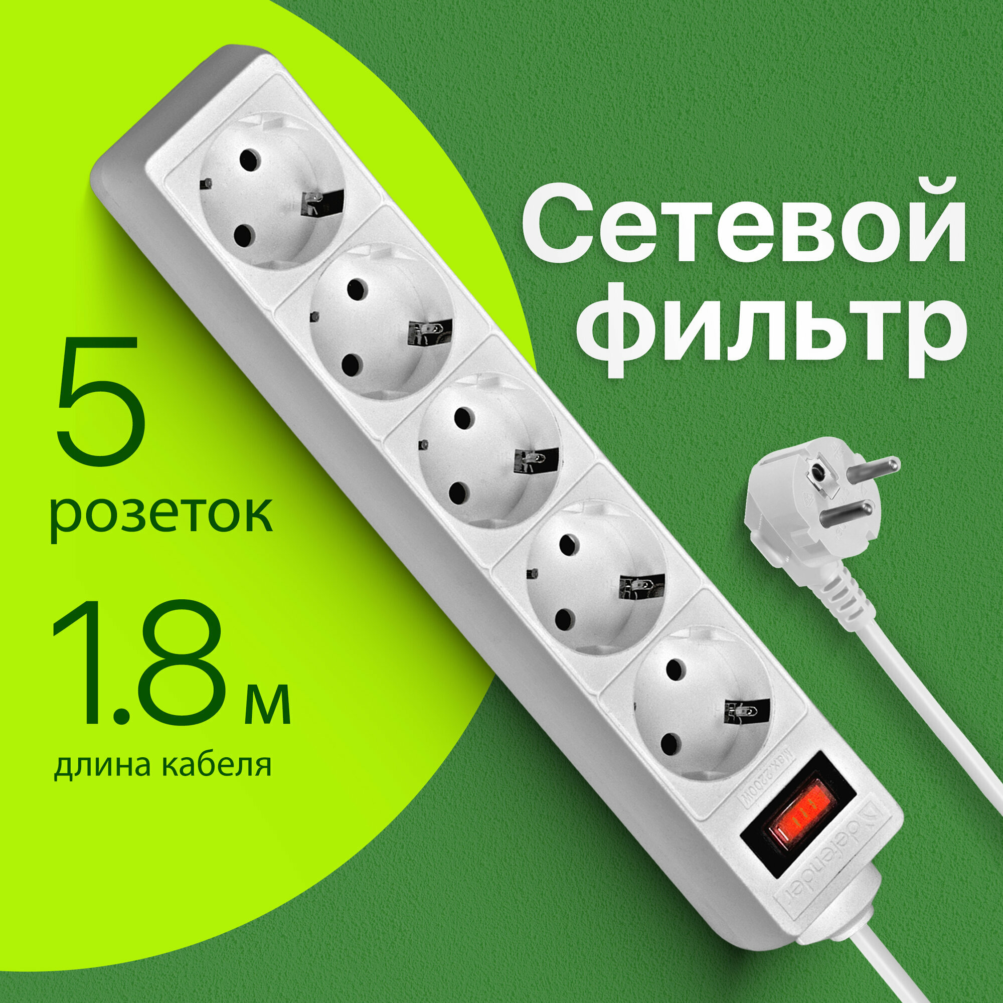 Купить Defender ES 1.8 (1.8 м, 5 розеток) Сетевой фильтр Defender ES 1.8 1,8 м, белый, 5 розеток 99481