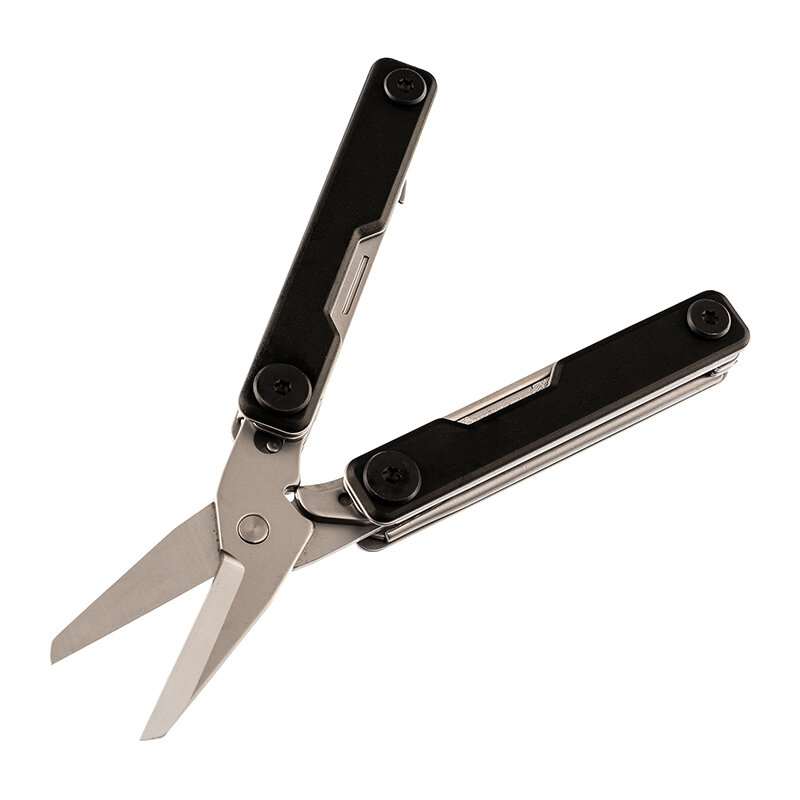 | Плюсы: | Очень аккуратно изготовлен. Всё прикольно кликает и фиксируется. Удобные (насколько это возможно для мультитула) ножницы.