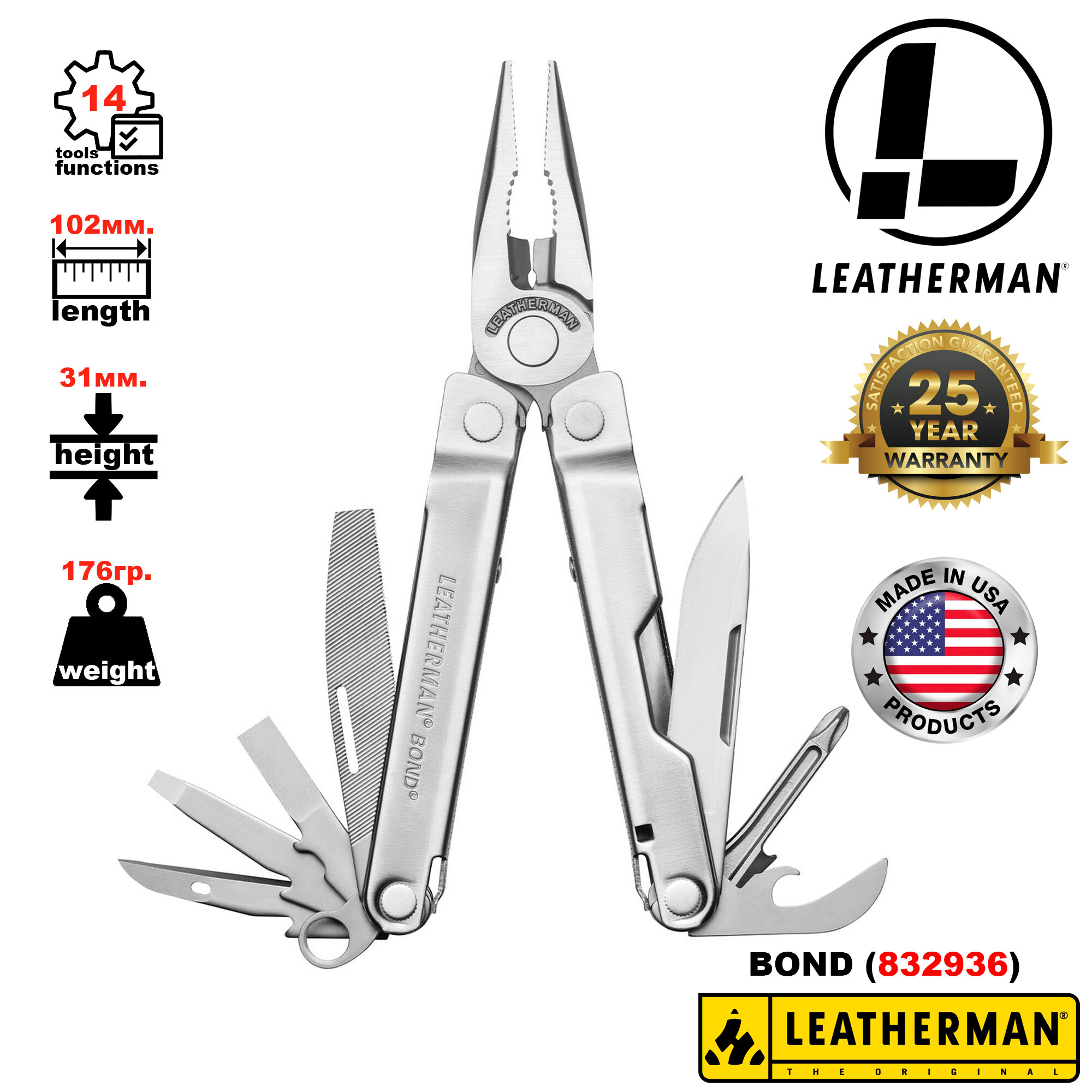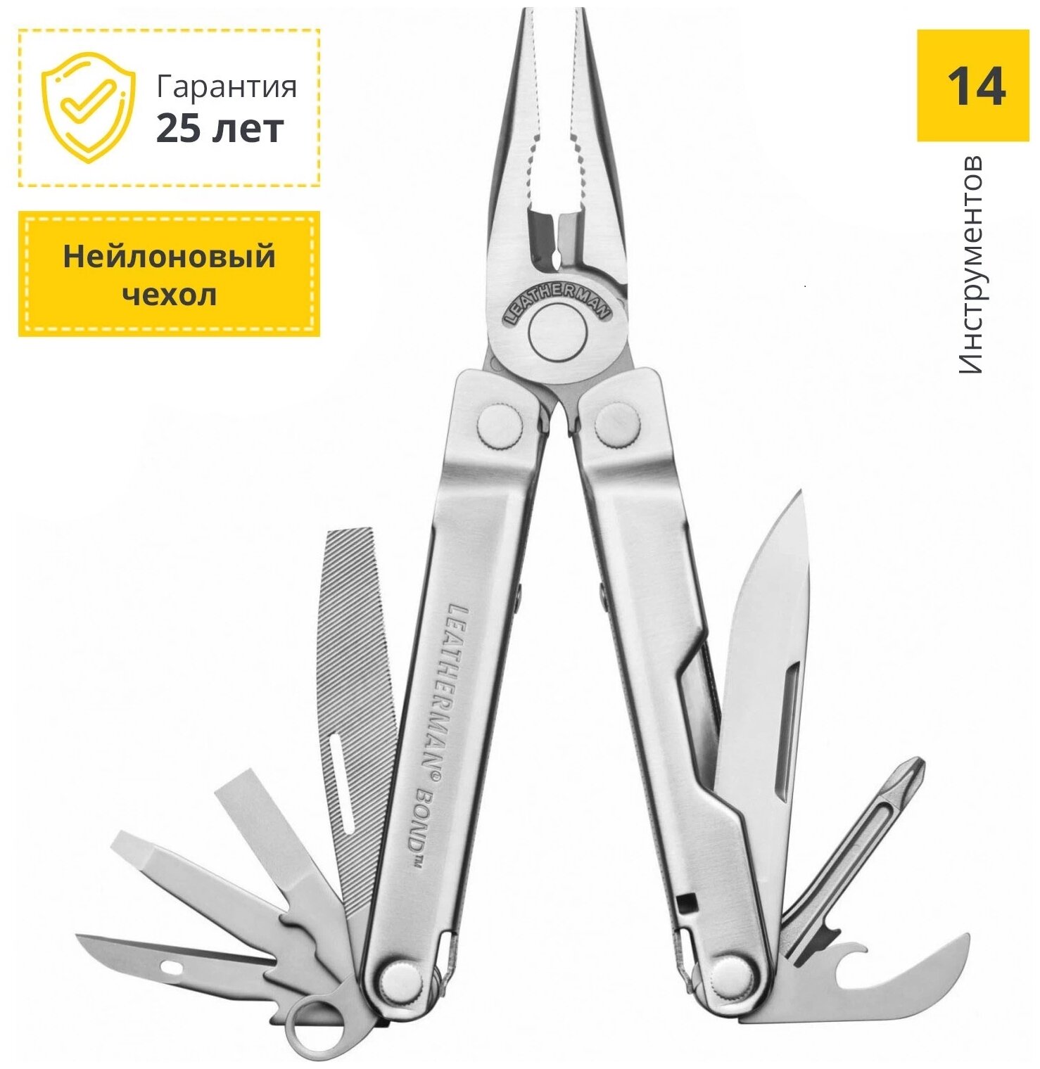 Leatherman Мультитул Bond, 14 инструментов, 10 см steel, чехол нейлон