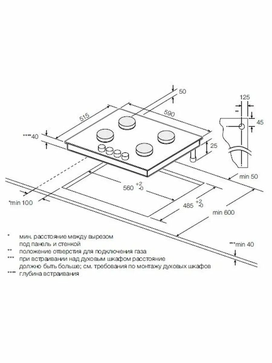 | Ширина для встраивания | 56 см |