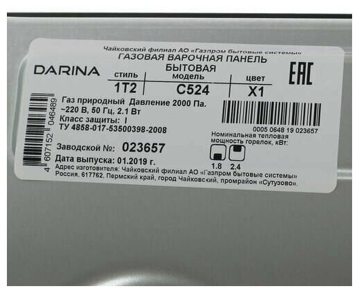 1Т2 С524 В Газовая варочная поверхность Darina 1Т2 С524 В