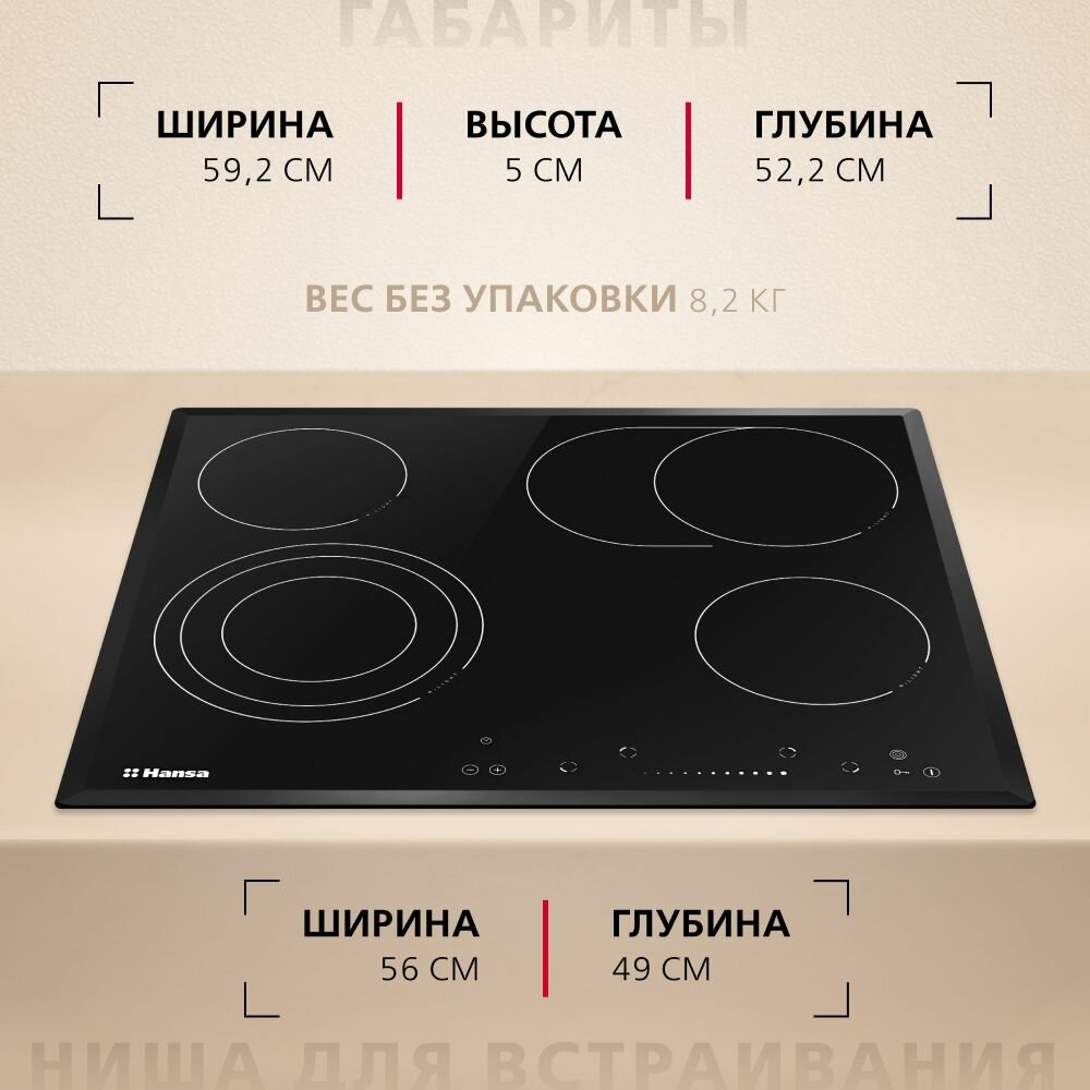 Электрическая варочная панель Hansa BHC66906, встраиваемая, 60 см, автоматика закипания, таймер автоматического отключения