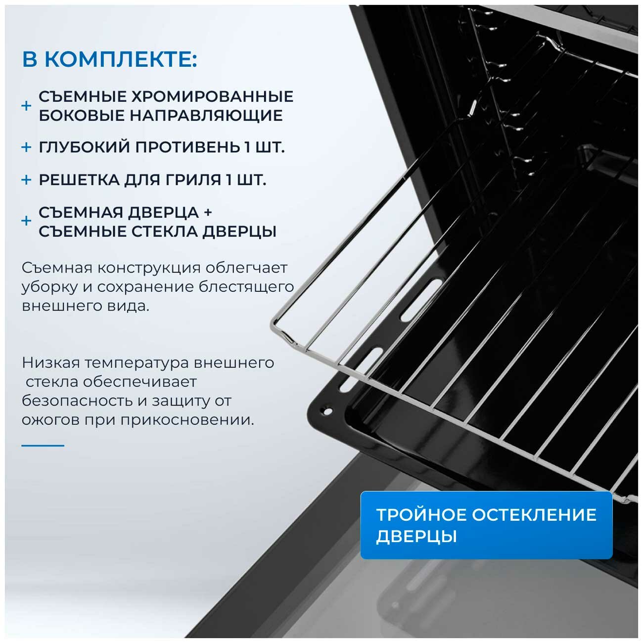 | Число стекол дверцы духовки | три |