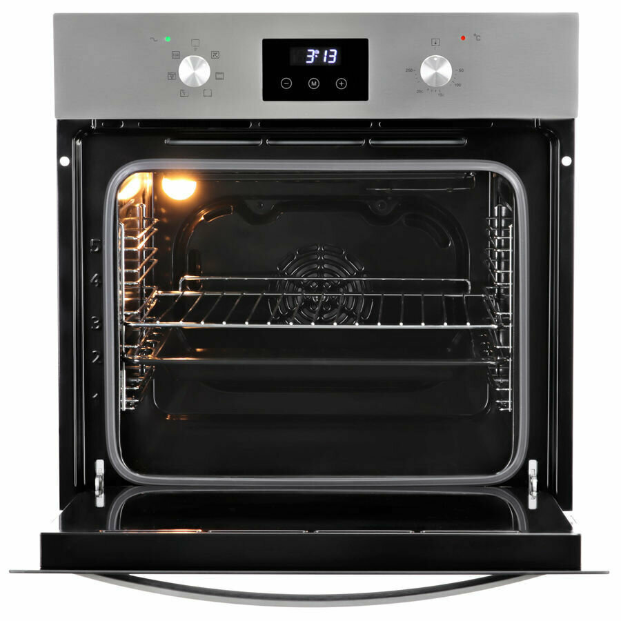 Корпус выполнен из плотного метала, не хлипкий. Хороший, яркий свет внутри. Во время первой готовки наблюдала через стекло за запечением курочки, пропеклась внутри и не пригорела с наружи. После готовки решила протереть от брызг внутреннюю стеклянную дверь духовки и стены, отмыла без усилий. |