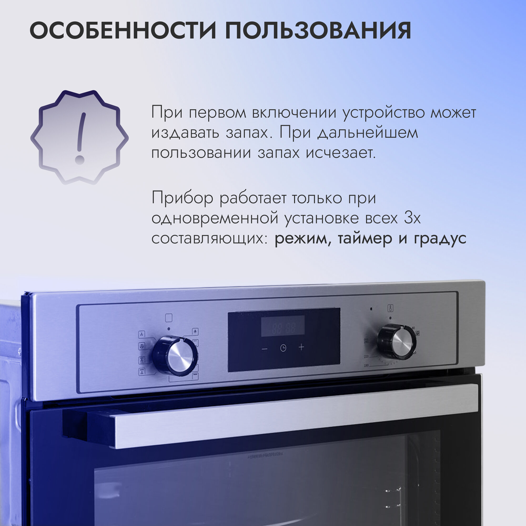 | Подробная комплектация | Духовой шкаф, шнур для подключения, инкструкция, противень, дополнительный противень |