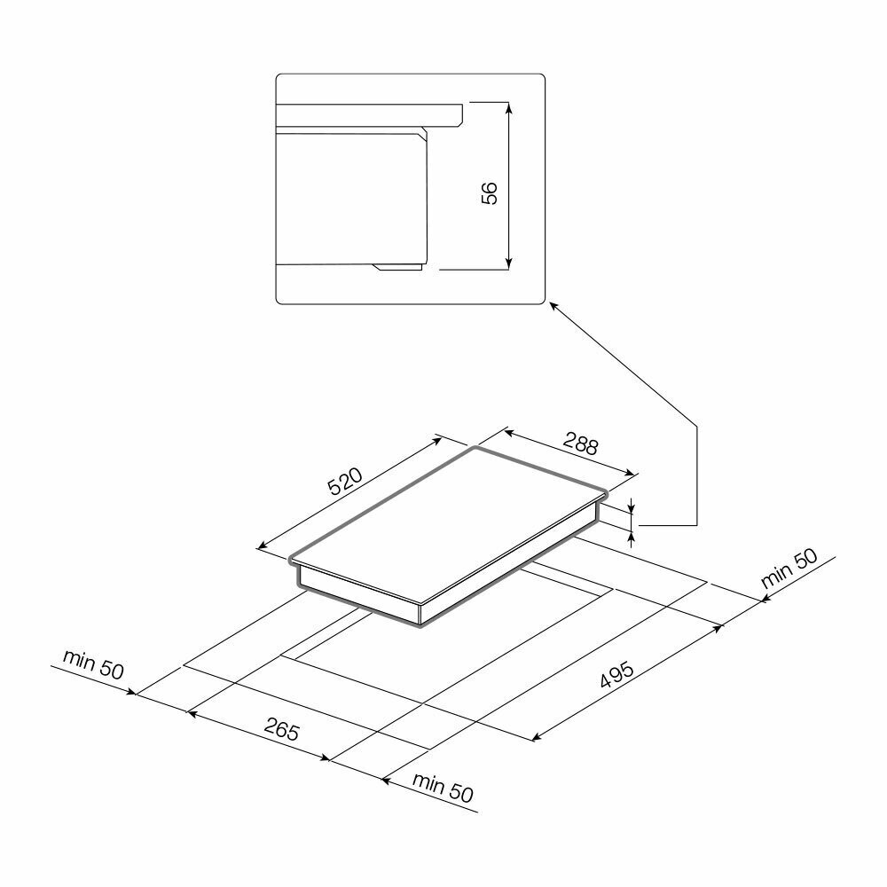 Встраиваемые индукционные панели Graude/ 288 х 56 х 520 мм, индукционная варочная панель Premium, се .