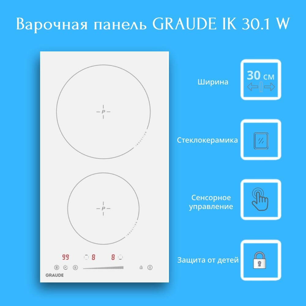 Купить Варочная панель Graude IK 30.1 W, белая стеклокерамика, 2 зоны нагрева, режим Booster, функция таймера, защита от детей