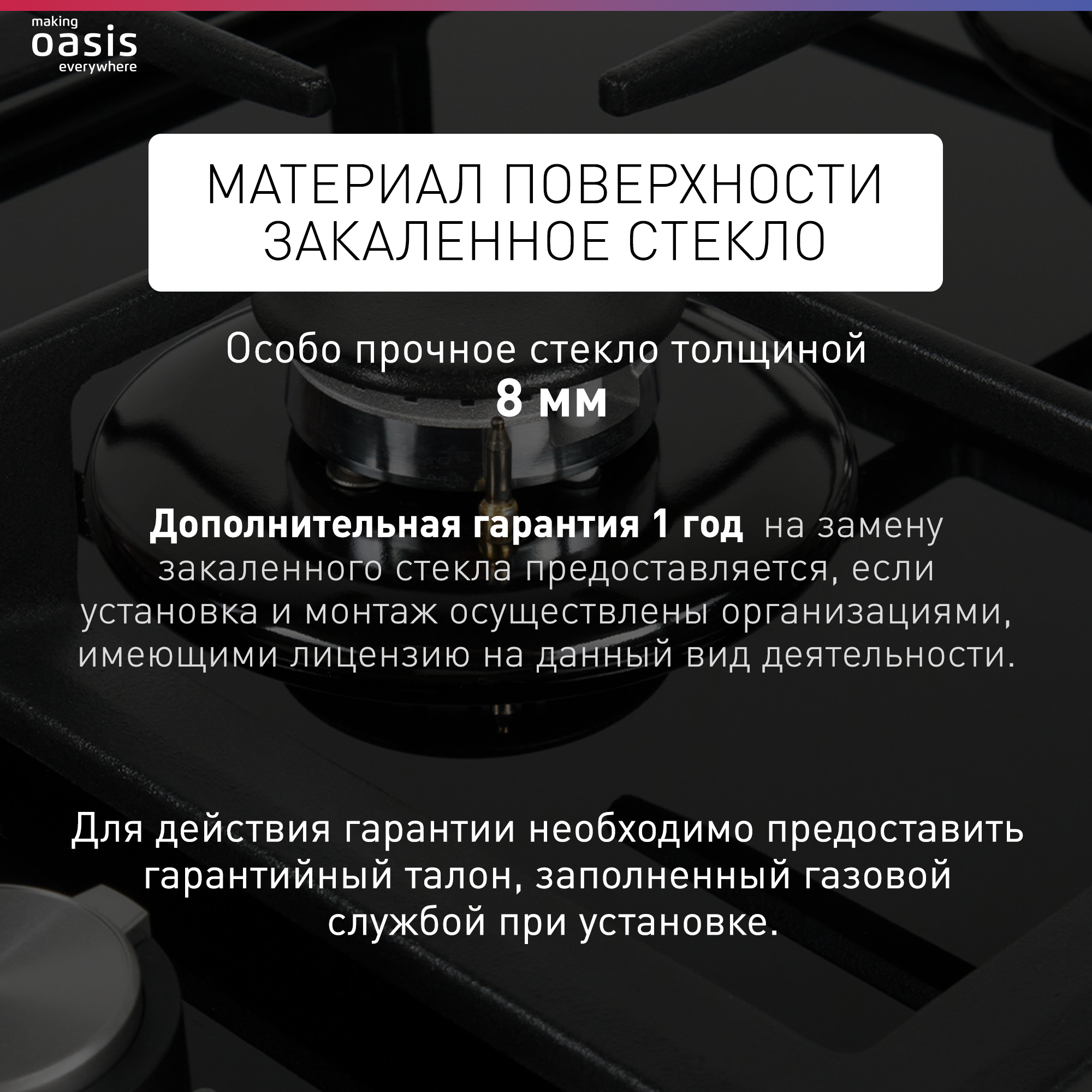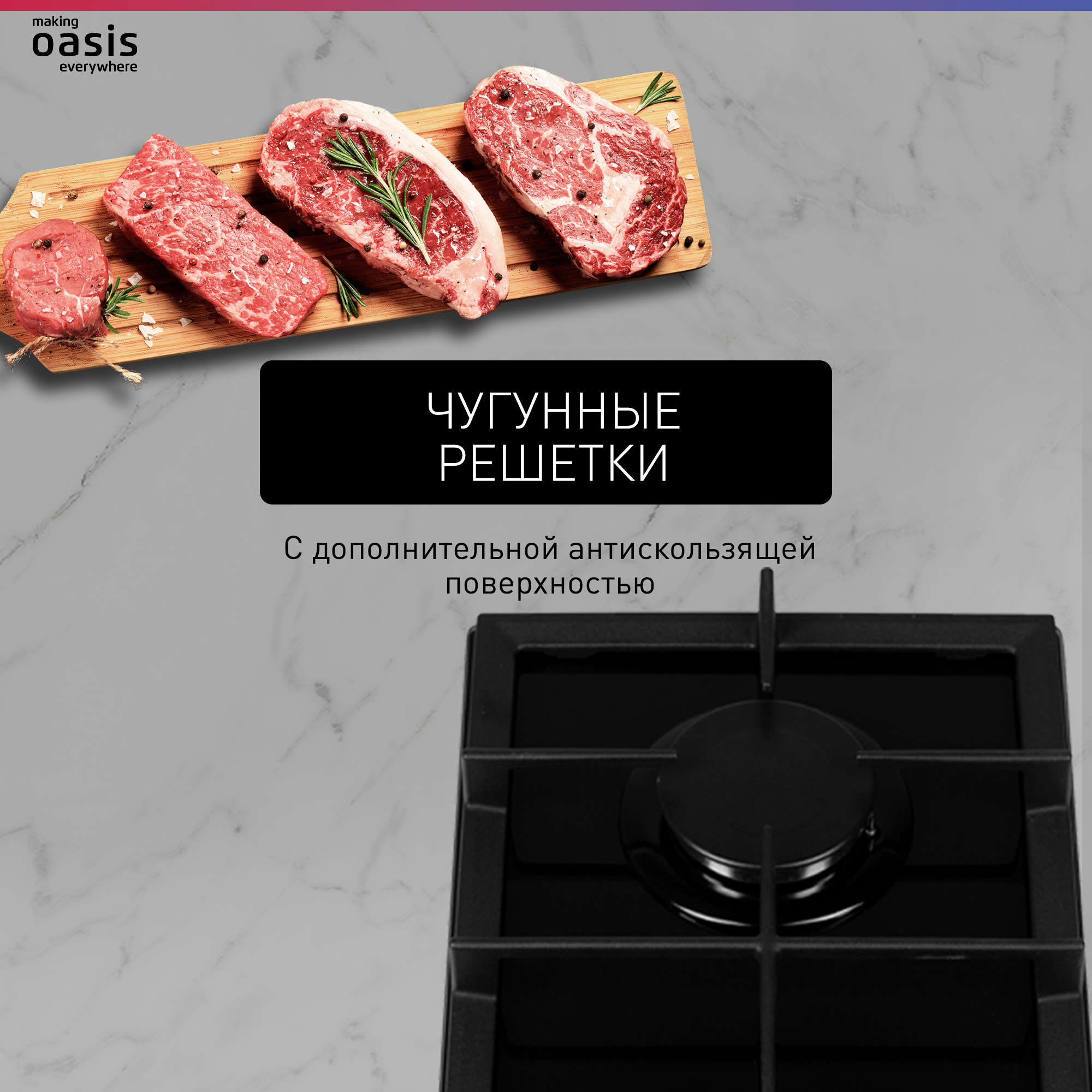 Газовая варочная панель Oasis P-GBD (F), цвет панели черный, цвет рамки черный