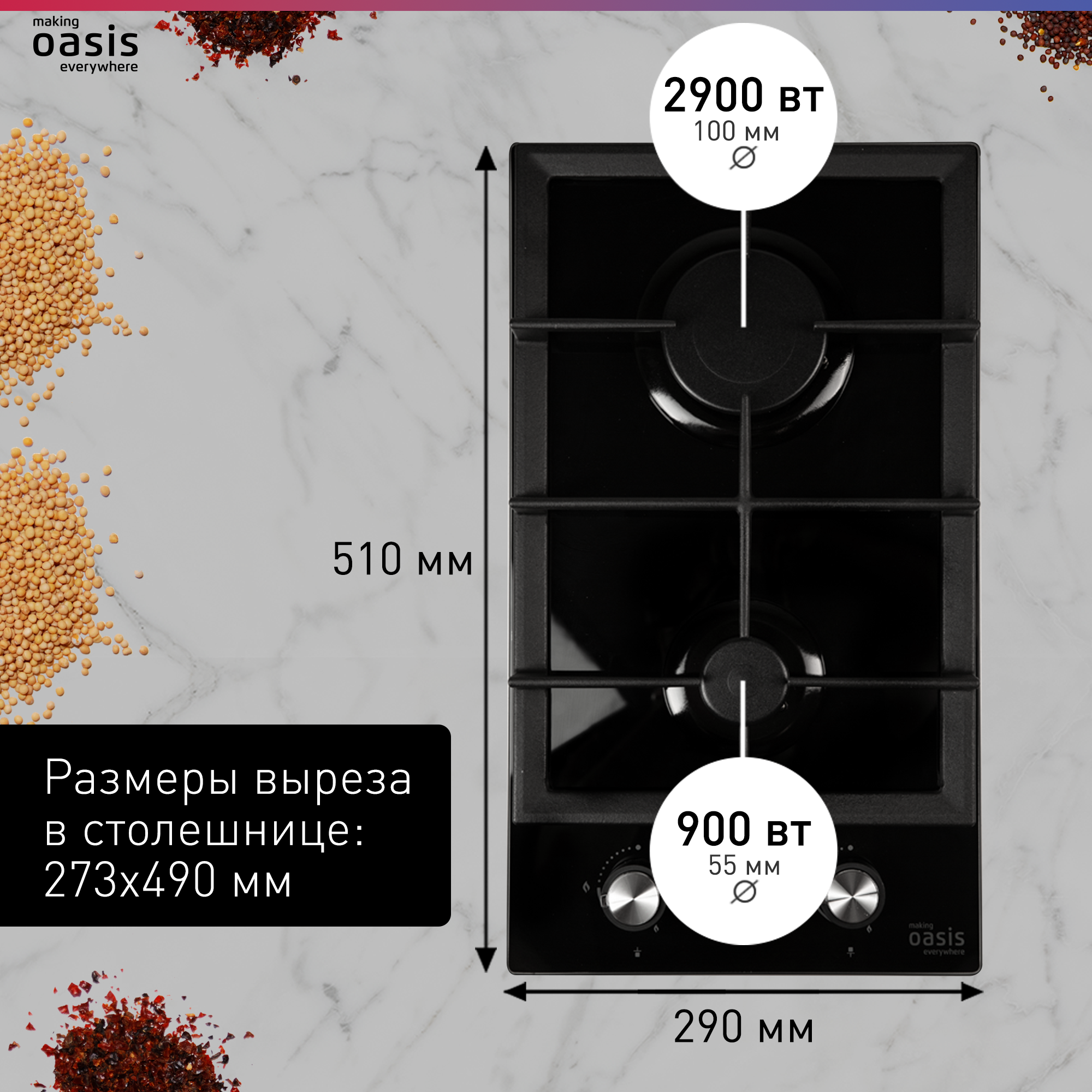 Газовая варочная панель встраиваемая Oasis P-GBD, 2 конфорки, черная