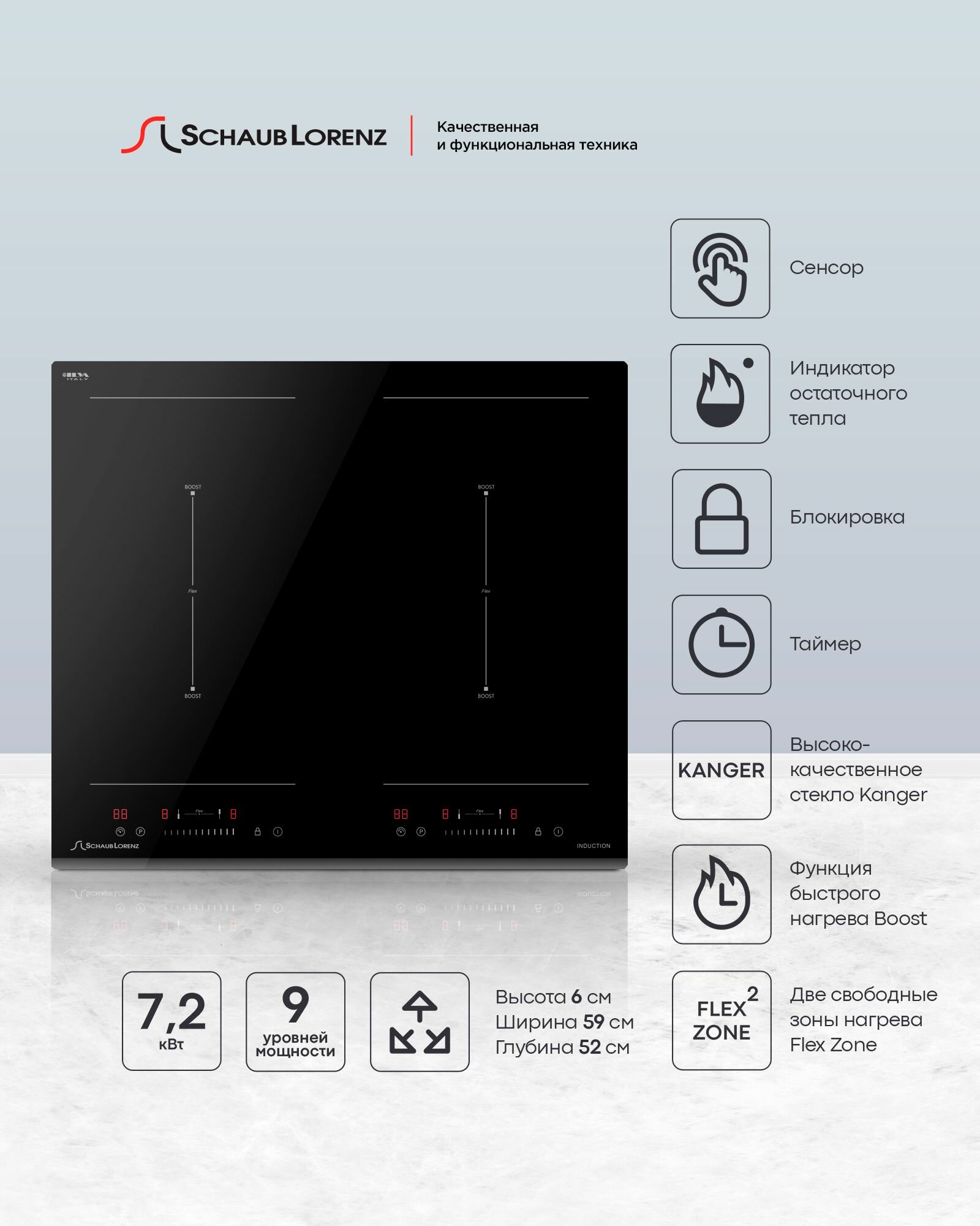 Индукционная варочная панель Schaub Lorenz SLK IY 65 S1, 60см, чёрная, Flex Zone, Boost