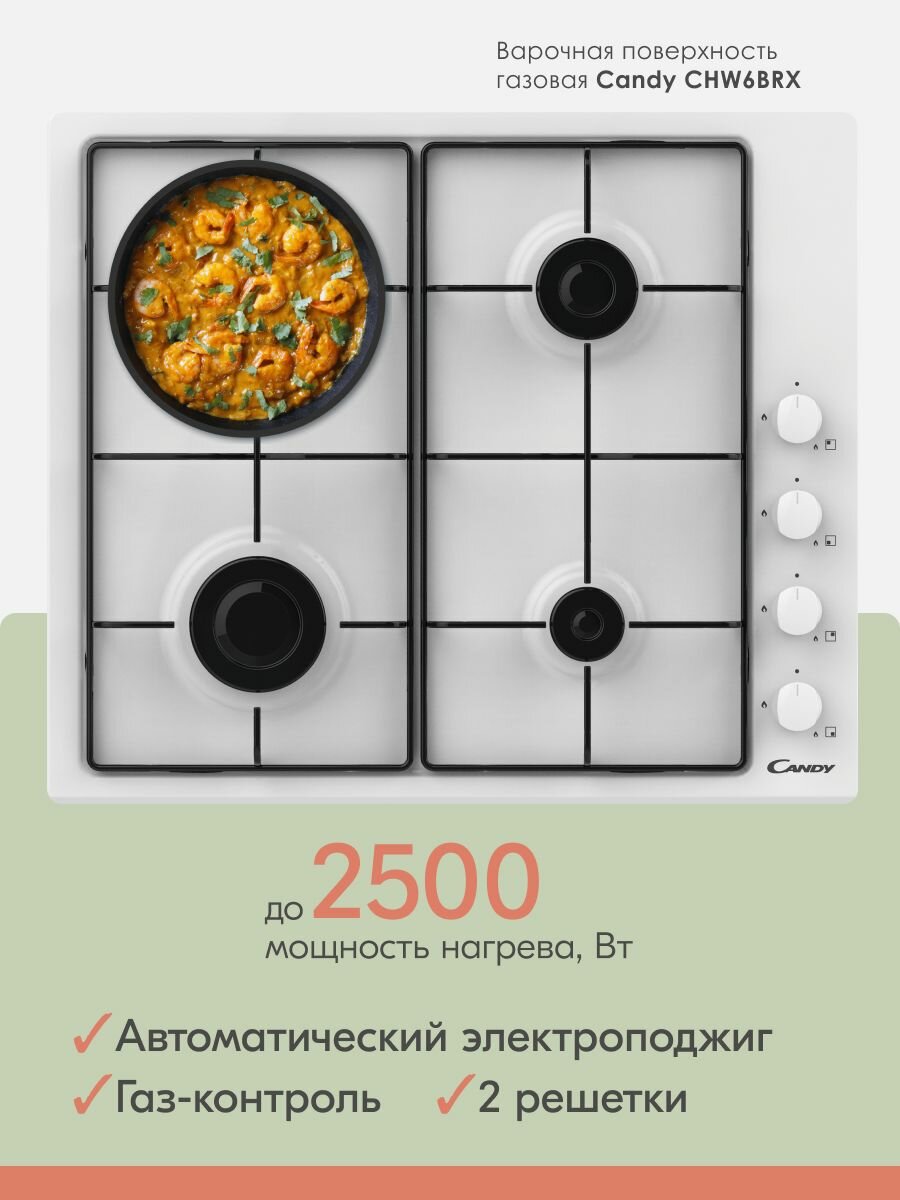 Газовая варочная панель Candy CHW6LWW интересное: