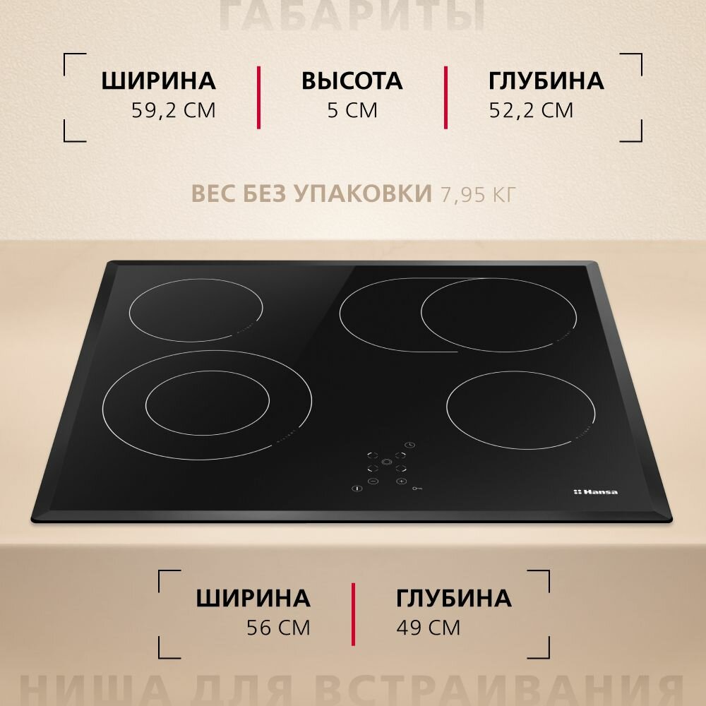 СохранитьЭлектрическая варочная панель Hansa BHC66706 57.5 см 4 конфорки цвет чёрный интересное: