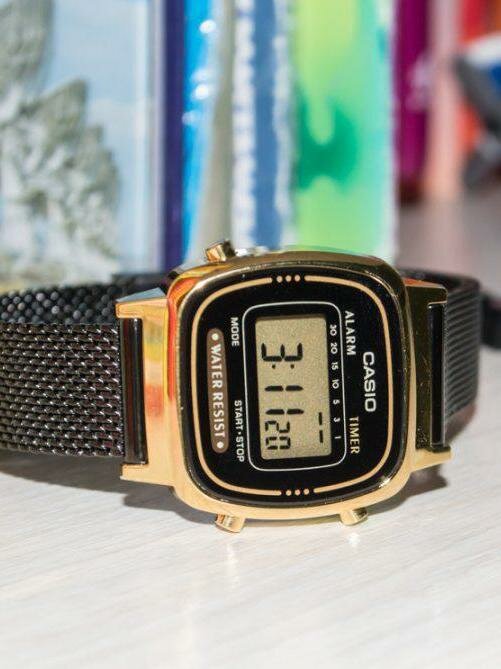 | Минусы: | Часовой формат только 12, нету 24 формата. Нету подсветки, зато есть таймер (от 5 до 60 сек). Ремешок хоть и миланский (казалось бы самый удобный из всех металлических) , но учитывая покрытие на браслете может подойти не каждому, так как ношение такого браслета на руке в отличие от металлического серебристого без покрытия специфическое, нет так сказать более удобного скольжения при носке. |