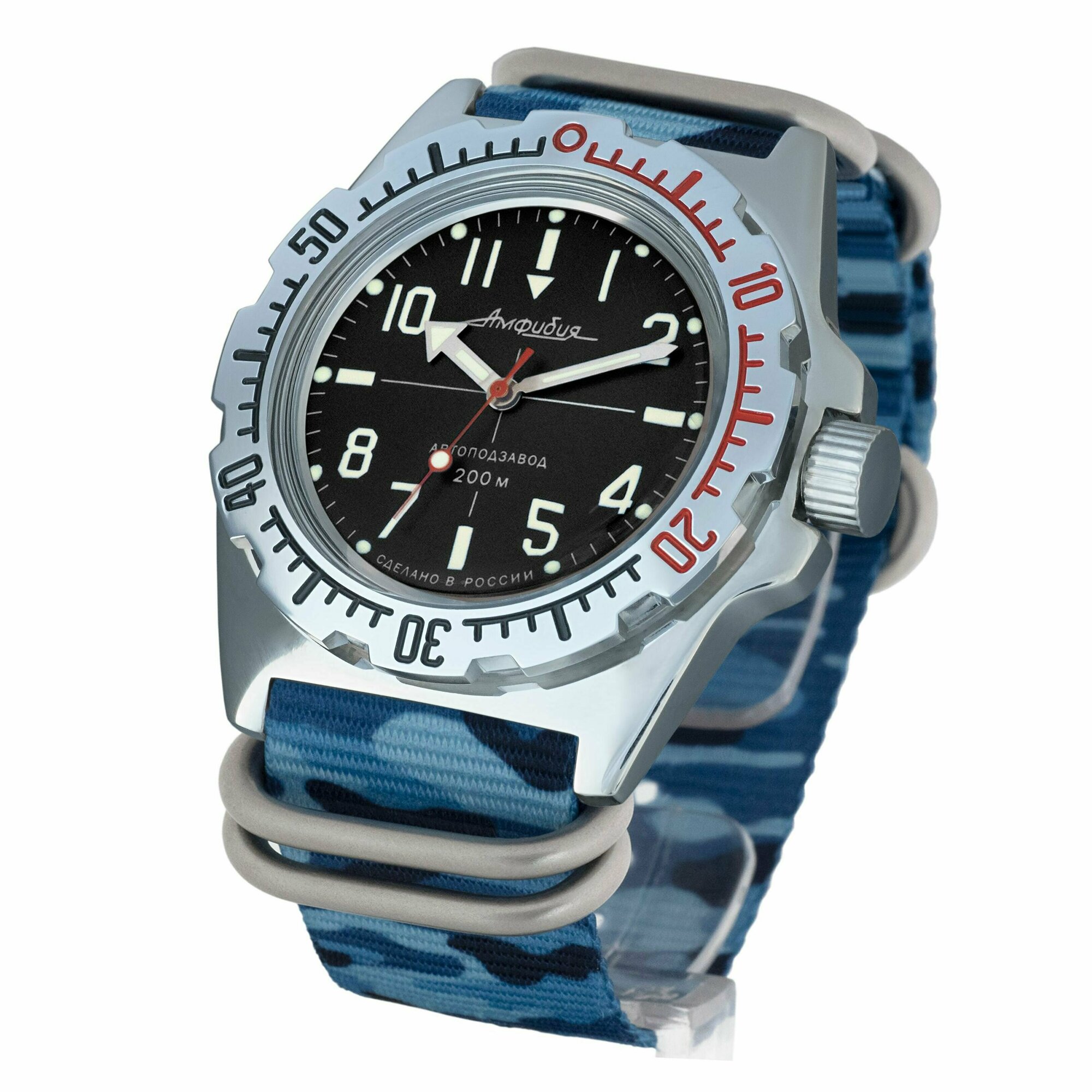 Часы наручные мужские механические с автоподзаводом Восток Амфибия 110647_multicolor, нейлон, мультиколор
