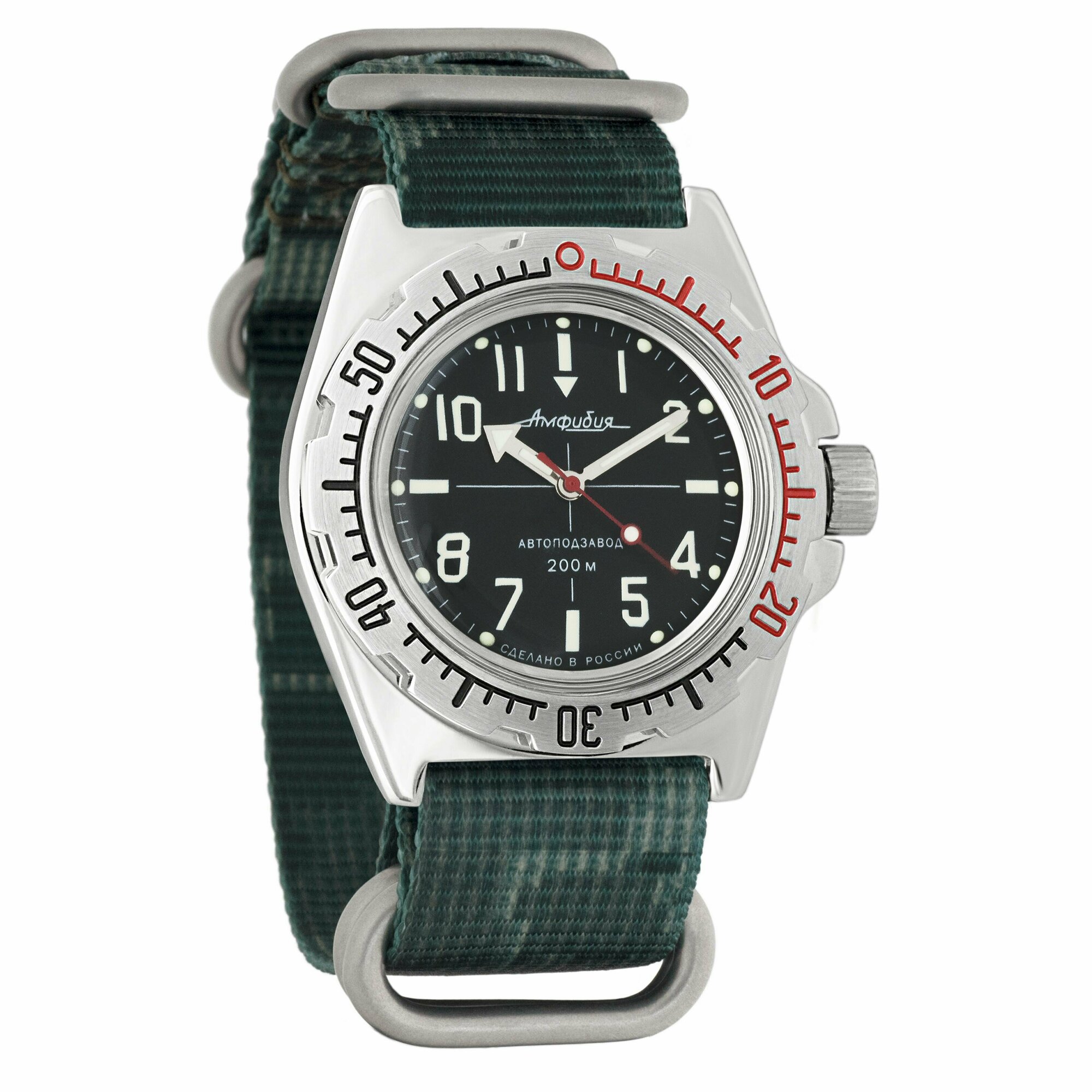 Часы наручные мужские механические с автоподзаводом Восток Амфибия 110647_digitalgreen, нейлон, камо цифровой зеленый