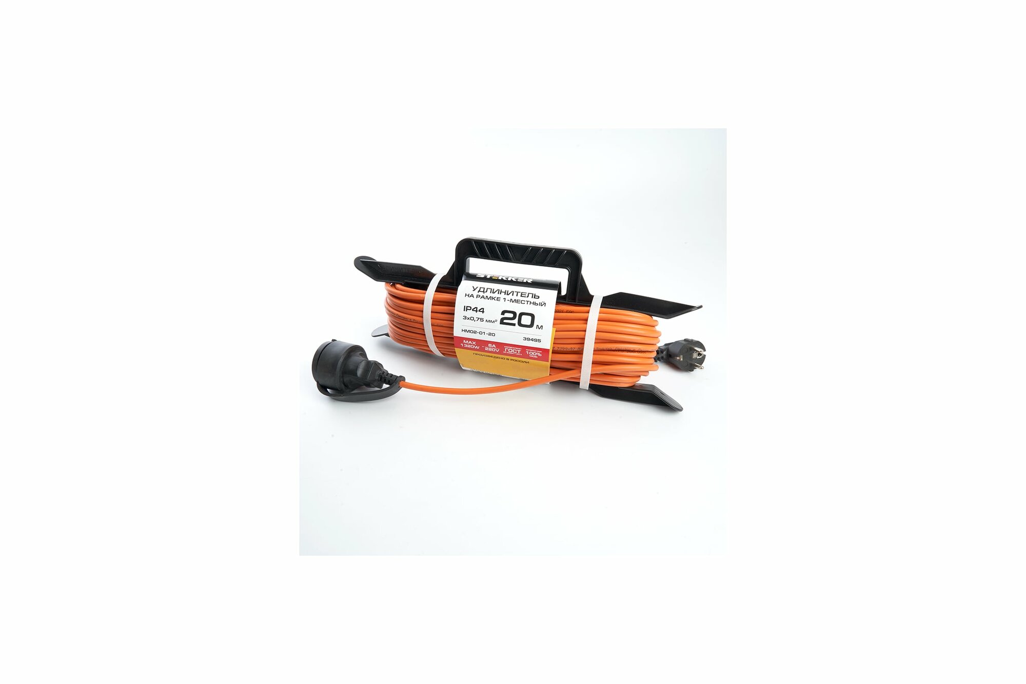Удлинитель на рамке 1-местный с/з, 3*0, 75, 20м, оранжевый, (Атлант, 40186), Stekker HM02-01-20 39495