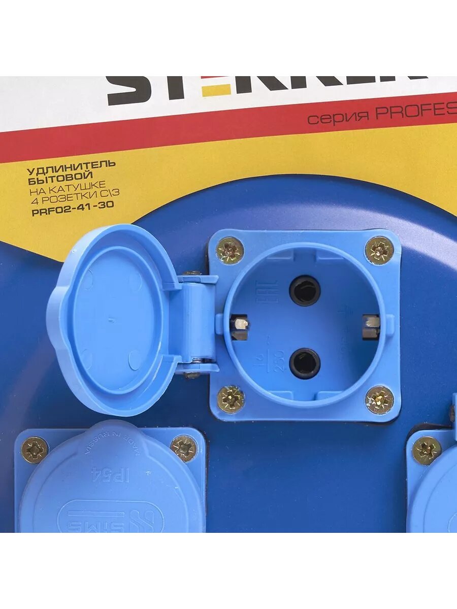 Купить STEKKER Удлинитель на металлической катушке с/з 4-местный Stekker, PRF02-41-30, 30м, 3х2,5 морозостойкий, серия Professional, синий 39296