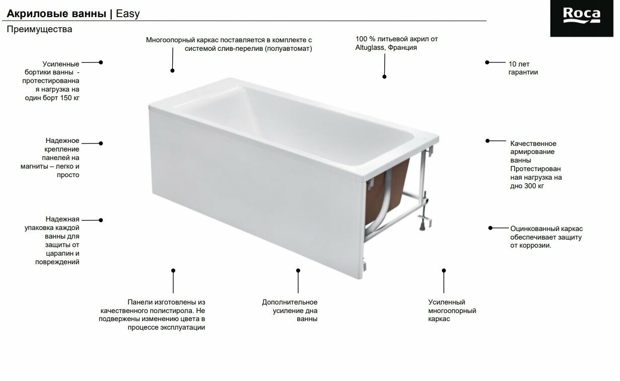 Панель фронтальная для ванны Roca Easy 259121000 белый интересное: