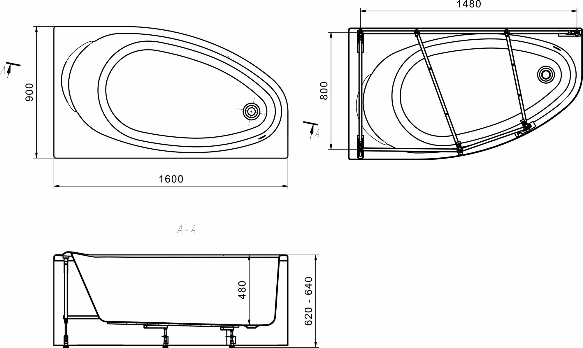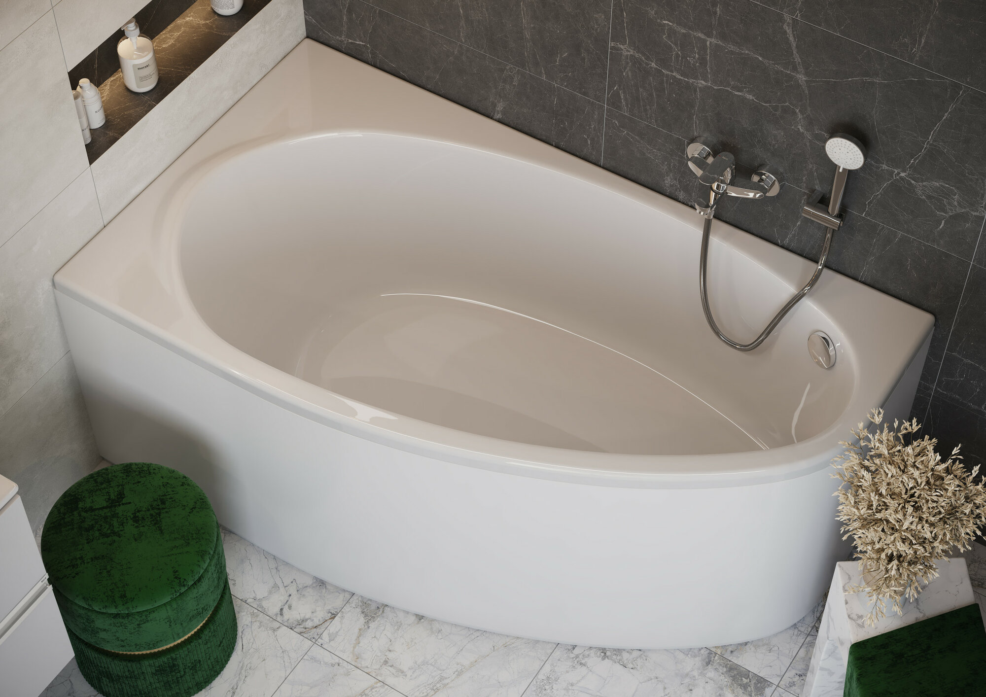 Ванна акриловая Roca CORFU 160x90 асимметричная правая белая
