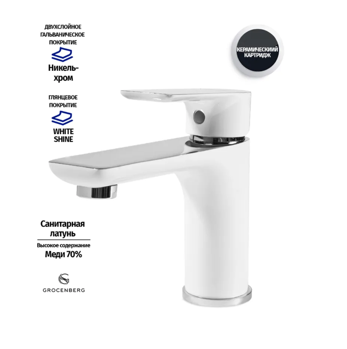 Смеситель для раковины Grocenberg GB2009 белый/хром
