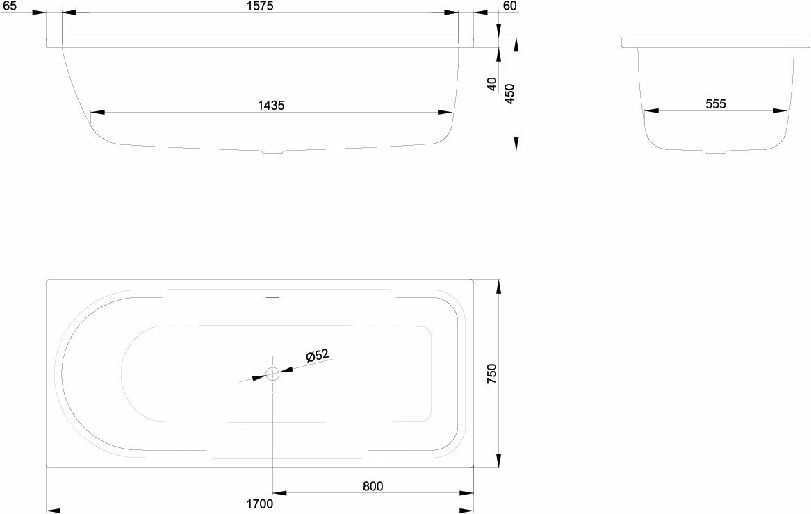Ванна, Bette, BetteOcean, шгв 1700-750-450, BetteGlasur® Plus, цвет-белый