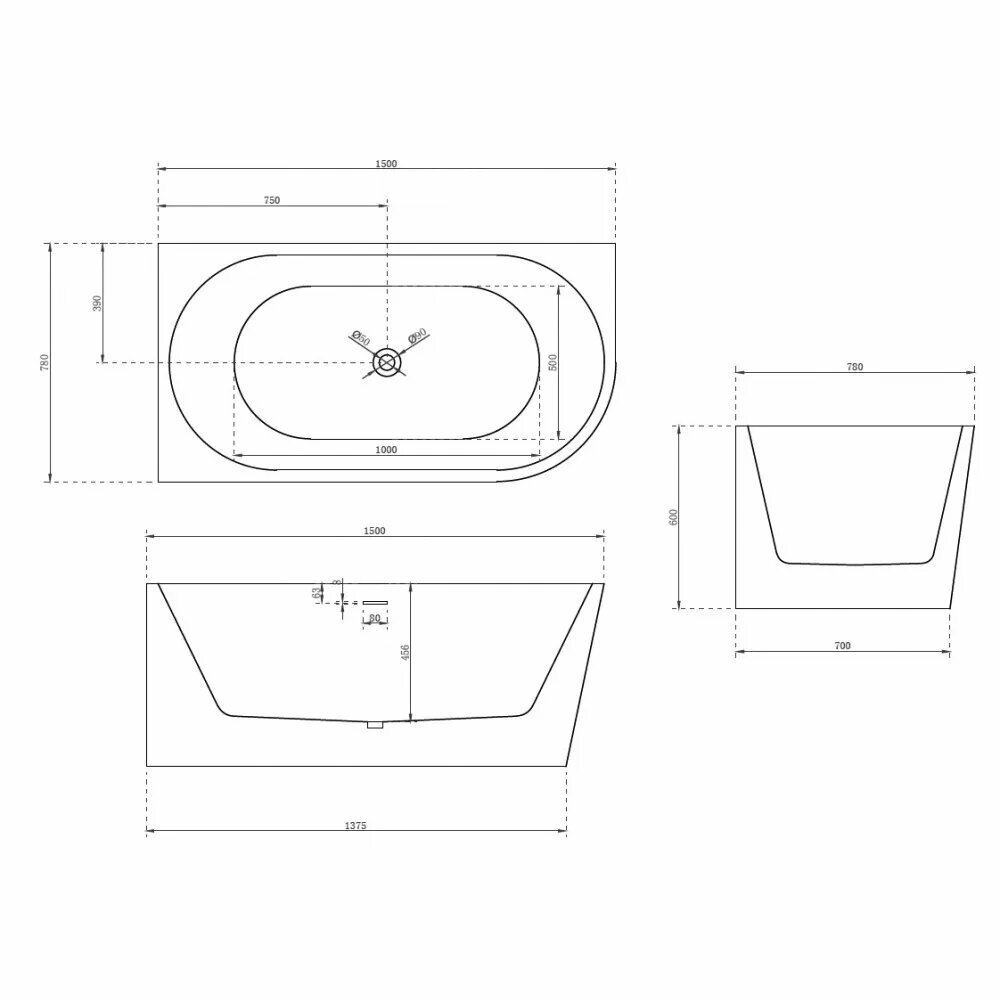 Купить Акриловая ванна ABBER AB9257-1.5 L 150x78 пристенная
