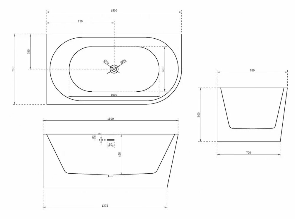 Акриловая ванна Abber 150х78 AB9257-1.5 L 150х78