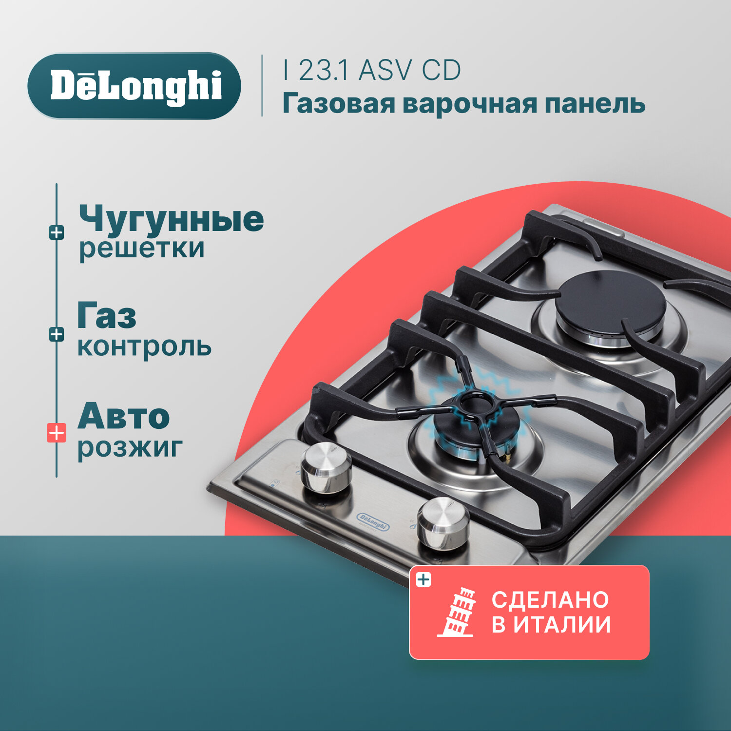 Газовая варочная панель DeLonghi I 23/1 ASV CD, газ-контроль