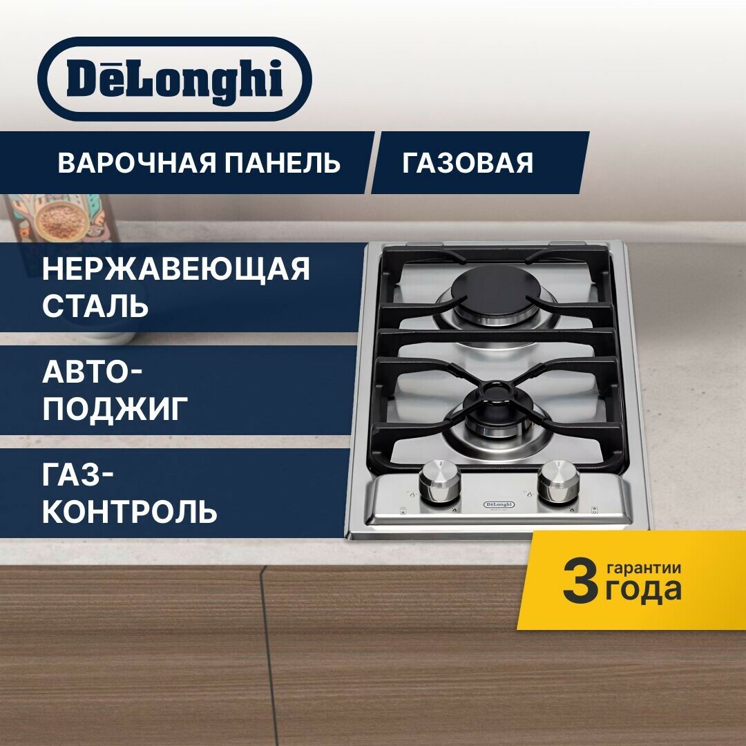 Варочная панель газовая 30 см DeLonghi I 23.1 ASV CD, автоматический розжиг