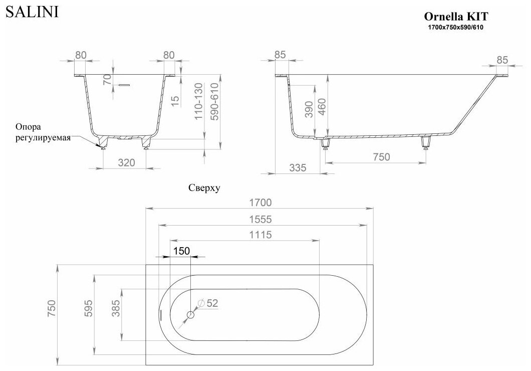 Ванна Salini ORNELLA KIT 170x75 102421M