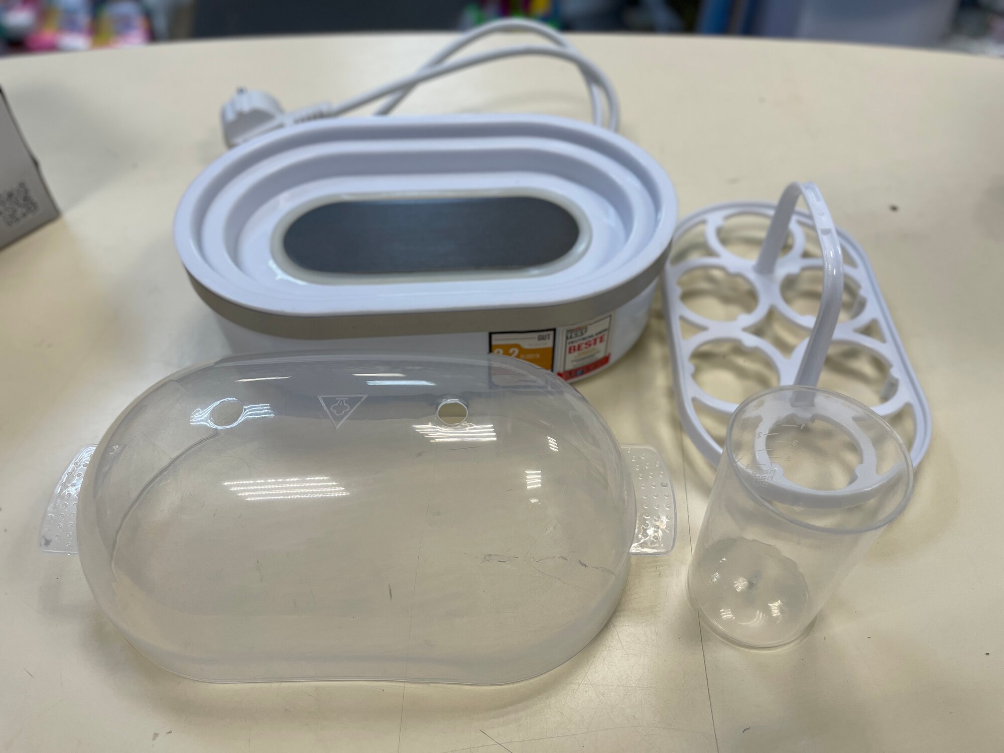 | Минусы: | Принцип отмера воды мерным стаканом для приготовления яйца нужной кондиции неудобен. Метки на мерном стакане сломаешь глаза. |