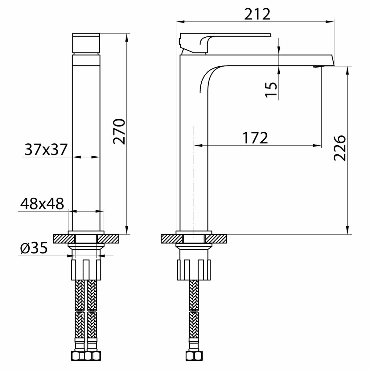 | Комплектация | Смеситель для накладных раковин, длина излива 172 мм, установочный ключ для аэратора, набор крепежа для установки смесителя, 2 гибких шланга 35 см для подвода воды |
