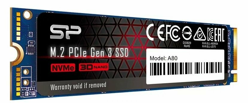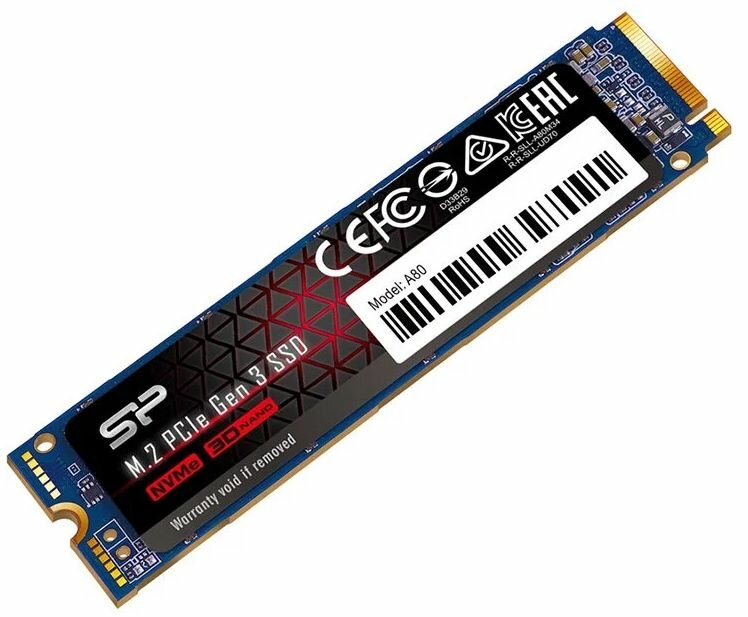 Твердотельный диск 1TB Silicon Power A80, M.2 2280, PCI-E 3x4, (R/W - 3200/3000 MB/s)