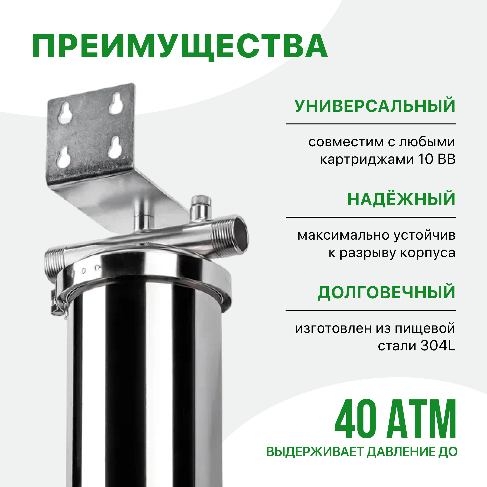| Отзыв: | Из нержавеющей стали, есть дополнительный слив внизу для промывки картриджа |