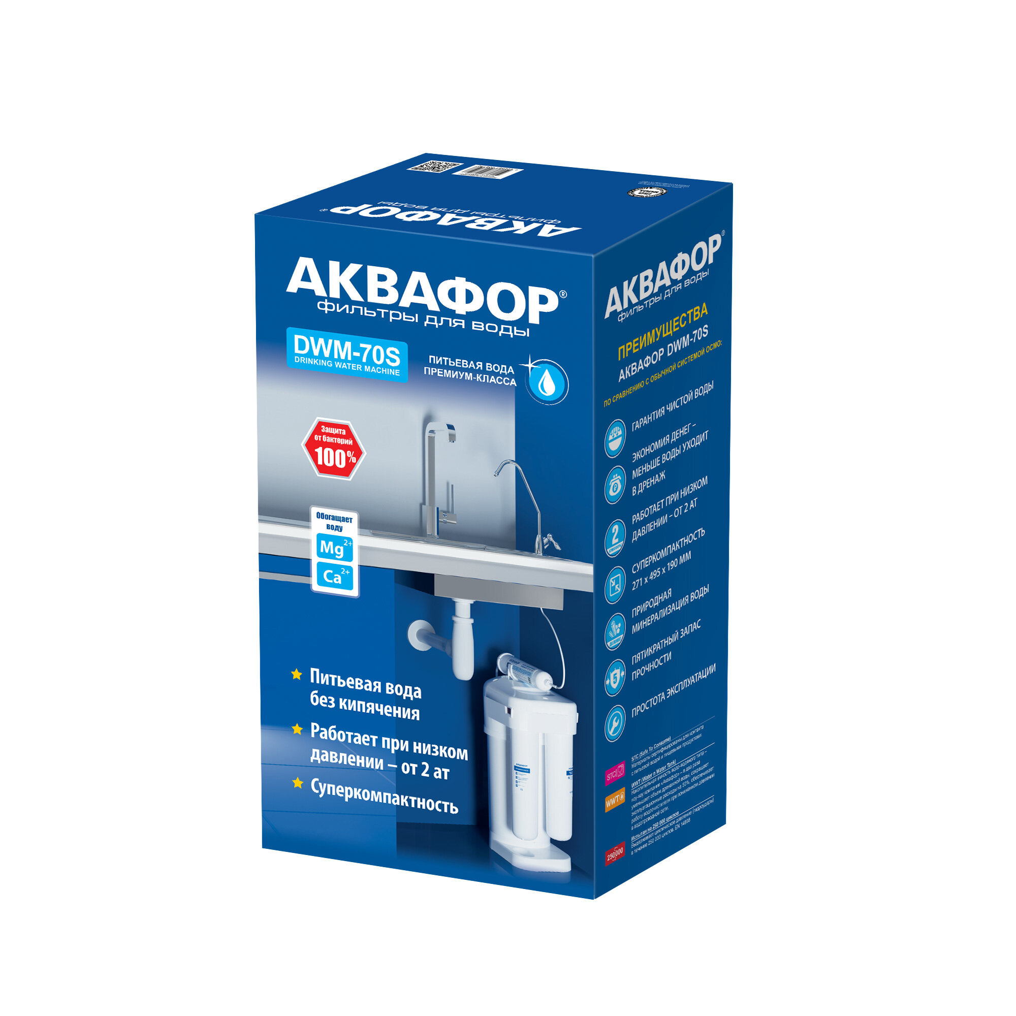 Купить Система обратного осмоса Аквафор DWM-70S быстросъемный 3 ступени с минерализатором бак 5 л кран в комплекте