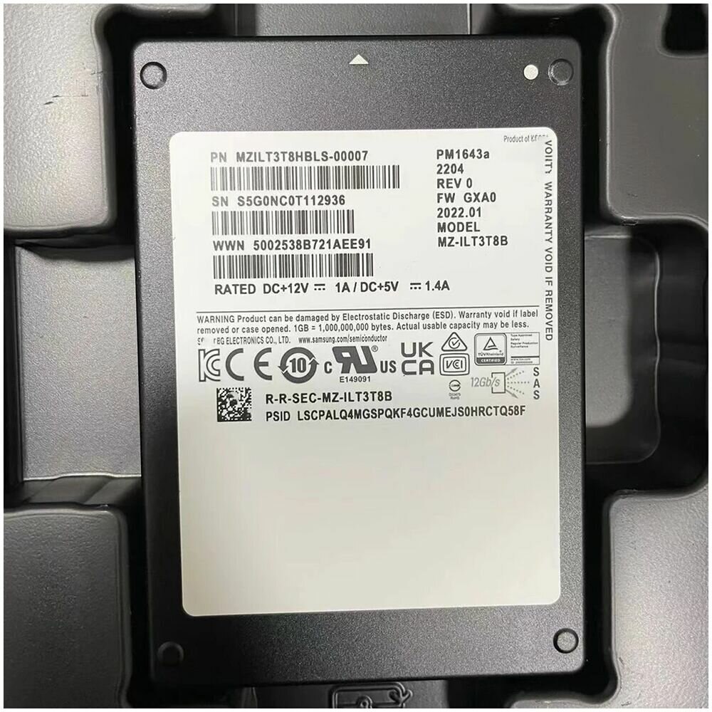 Накопитель SSD Samsung PM1643a MZILT3T8HBLS-00007/SAS 3.0/3.84 TB /Скорость чтения 2100МБайт/с Скорость записи 2000МБайт/с