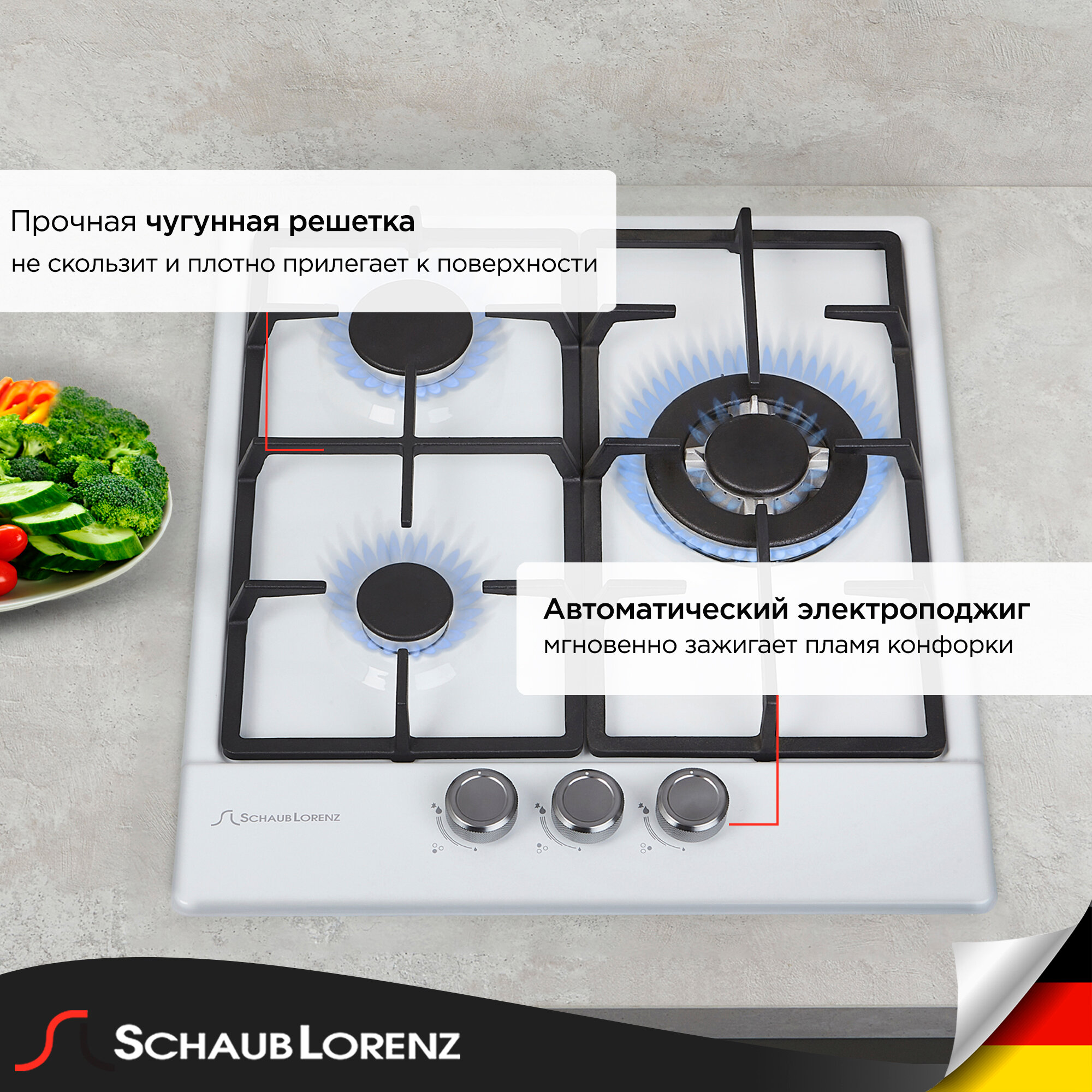 СохранитьГазовая встраиваемая варочная панель Schaub Lorenz SLK GW4518, 45см, белый, автоподжиг, WOK, газ-контроль. интересное: