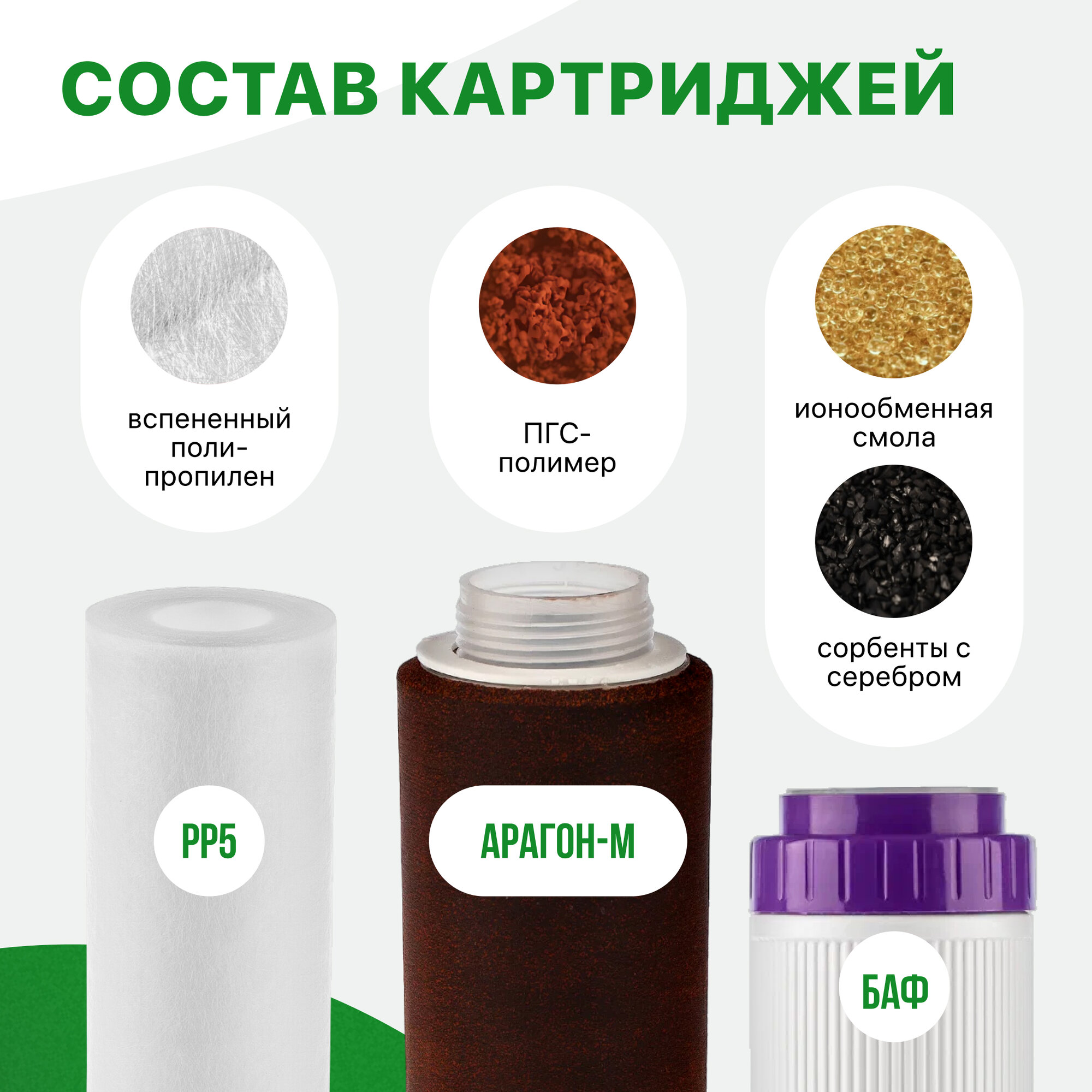 Комплект картриджей для фильтра Гейзер Классик "К-2", сменный, для мягкой воды / гейзер 3 / Арагон